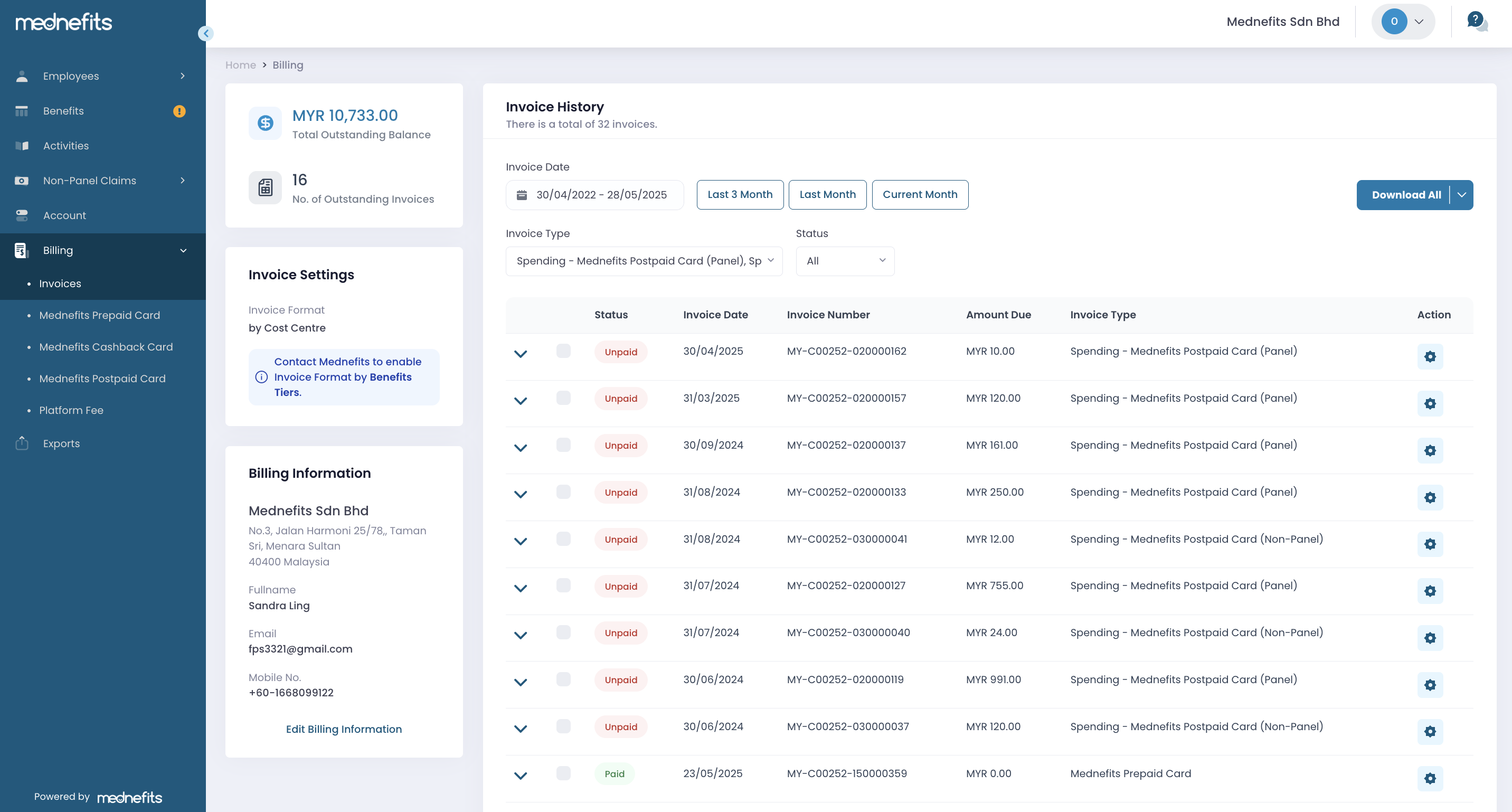 In order to make payment by direct debit, you will need to give Mednefits authorisation to debit directly from your corporate bank account. For spending account invoices, the amount payable will be debited from your corporate bank account 20 days after the invoice statement date.