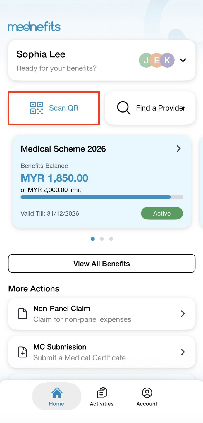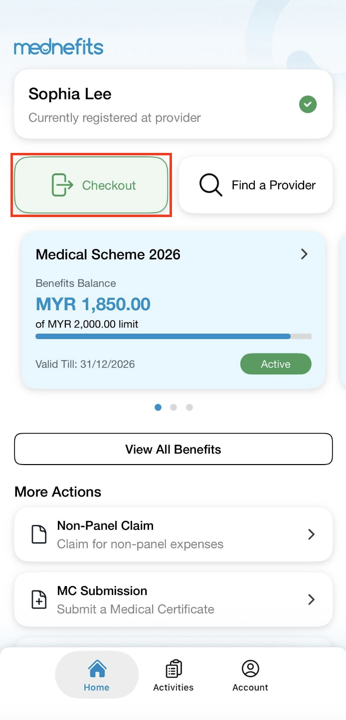 When visiting the panel clinic or provider, open your Mednefits app and follow the steps below: