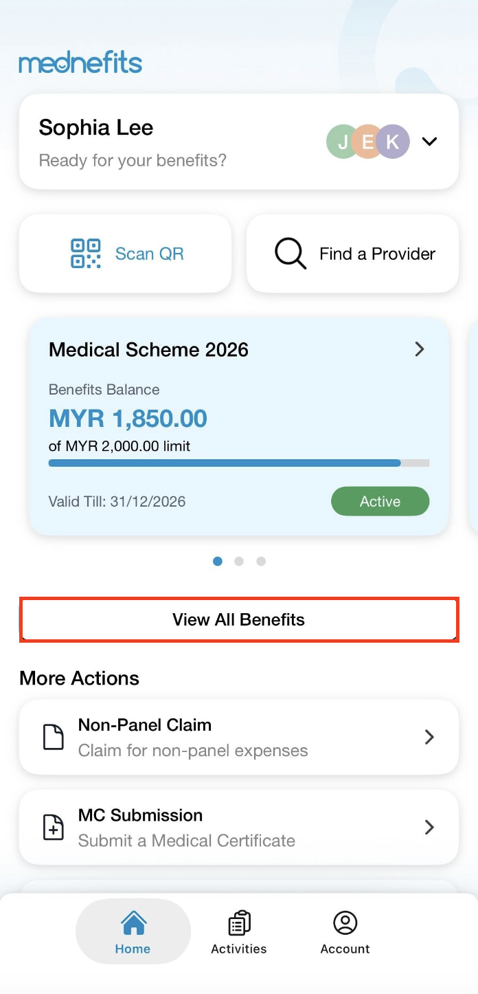 Step 1: On your home page, click on View All Benefits to check your balance.