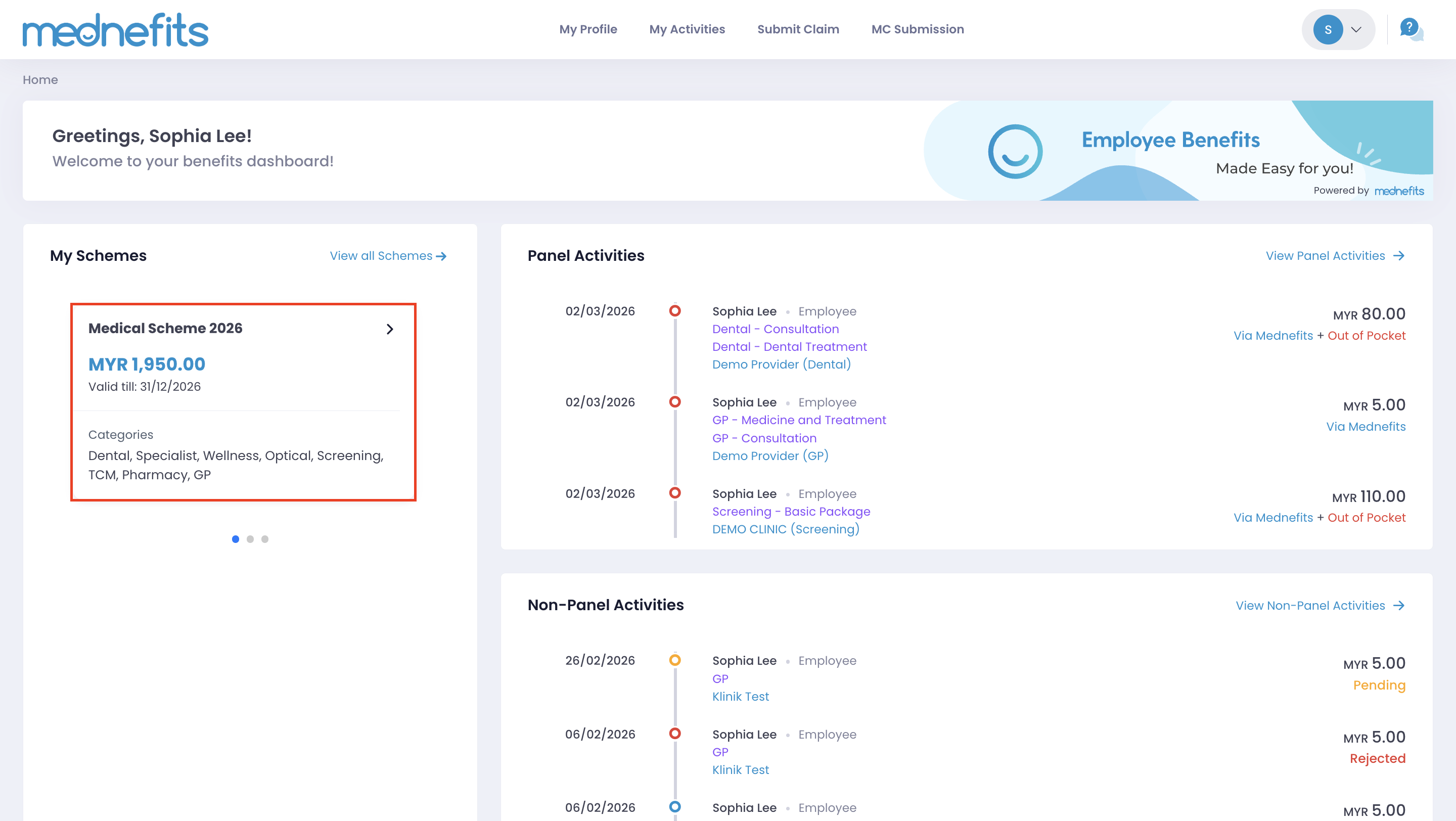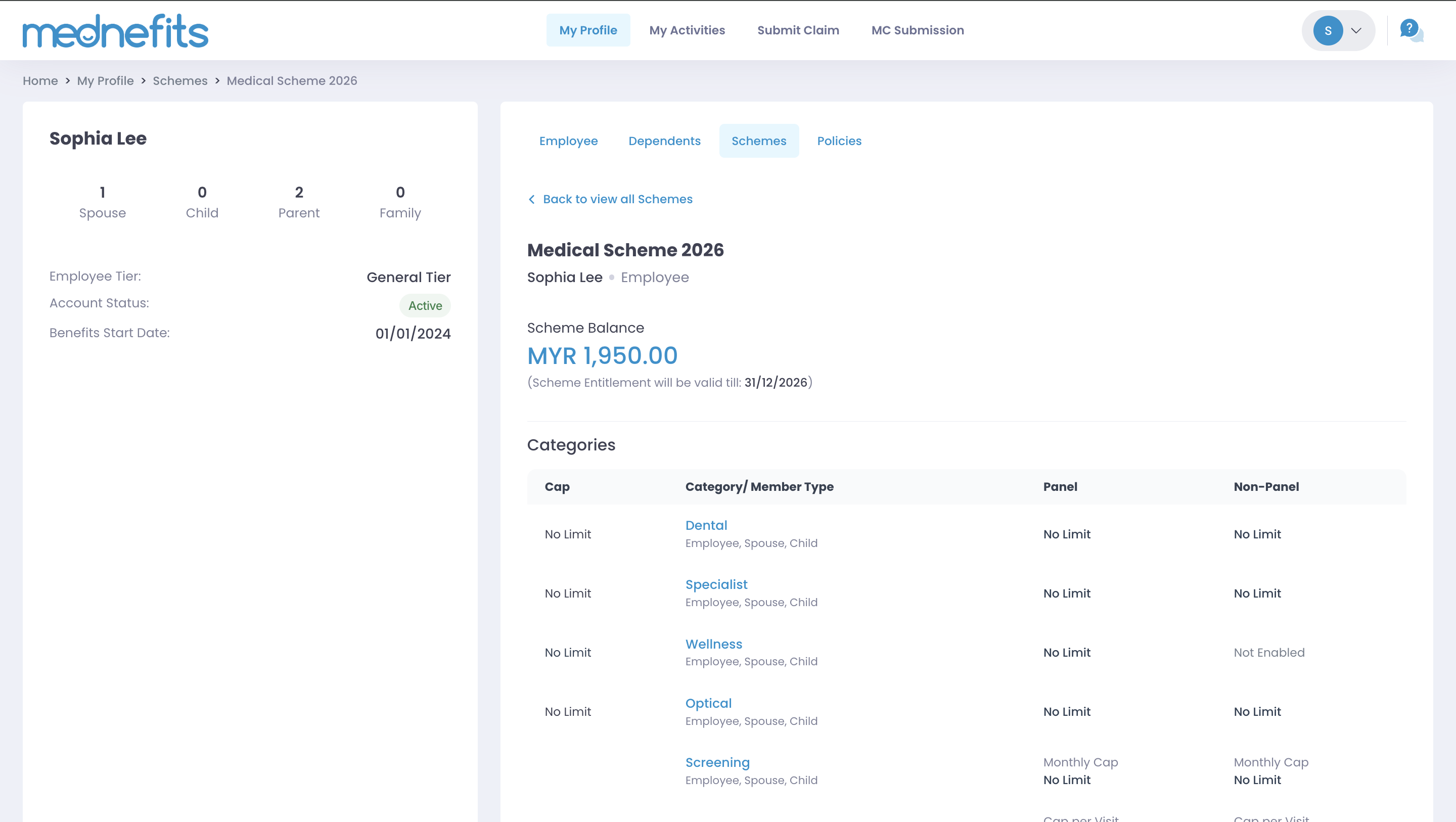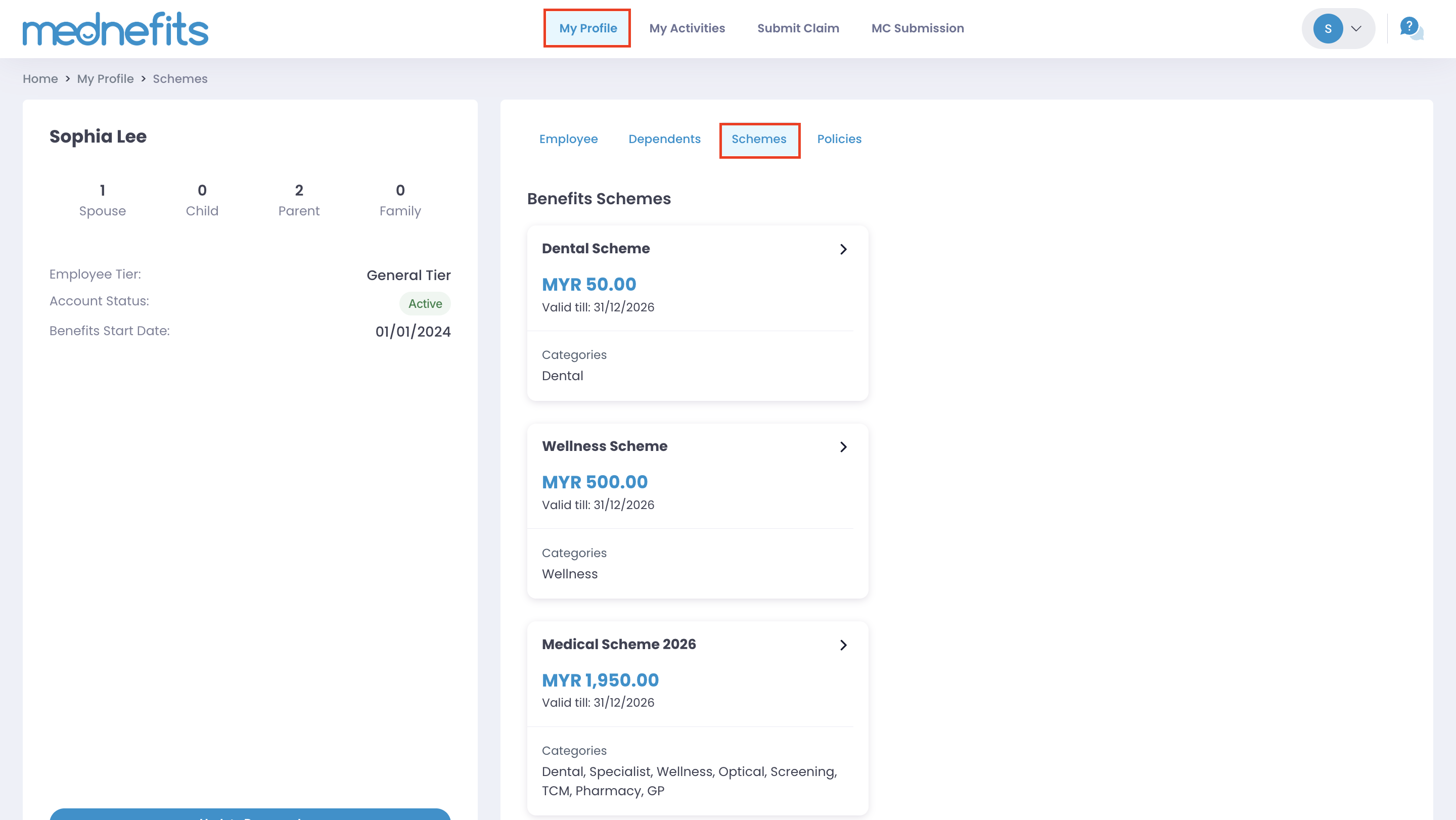 Step 2: You can click My Profile on top of your dashboard and choose Schemes to have a detailed overview of your balance and entitlements.
