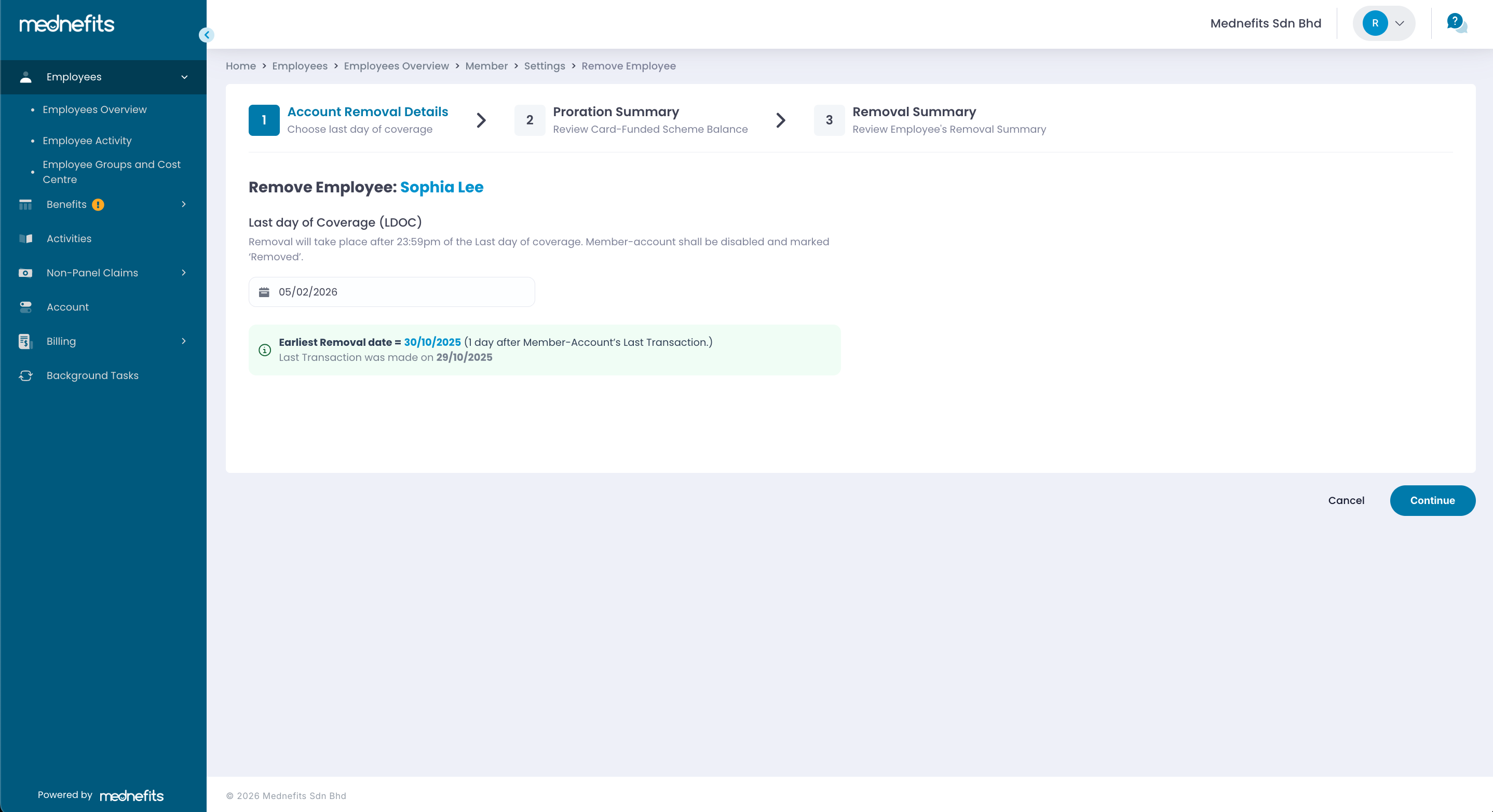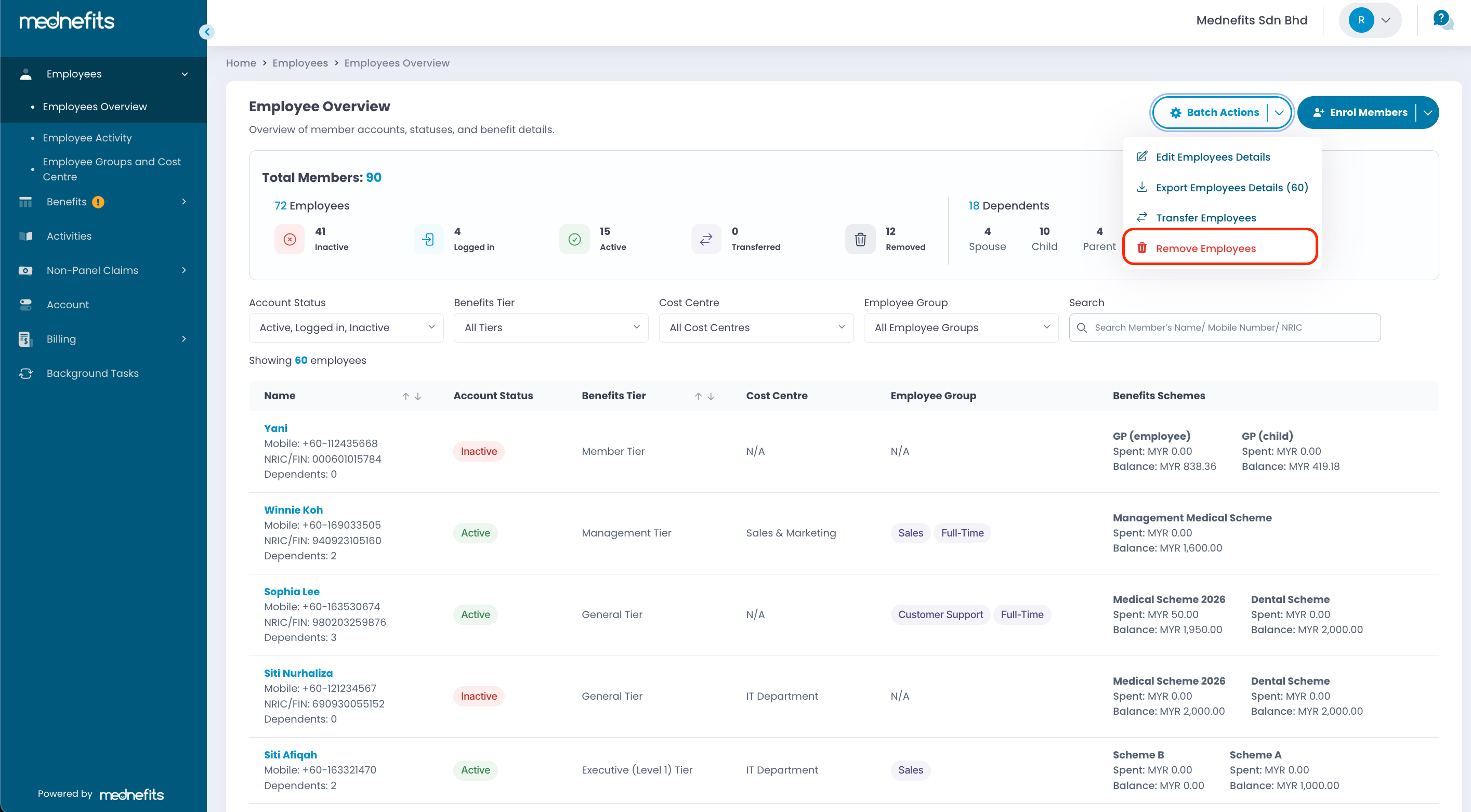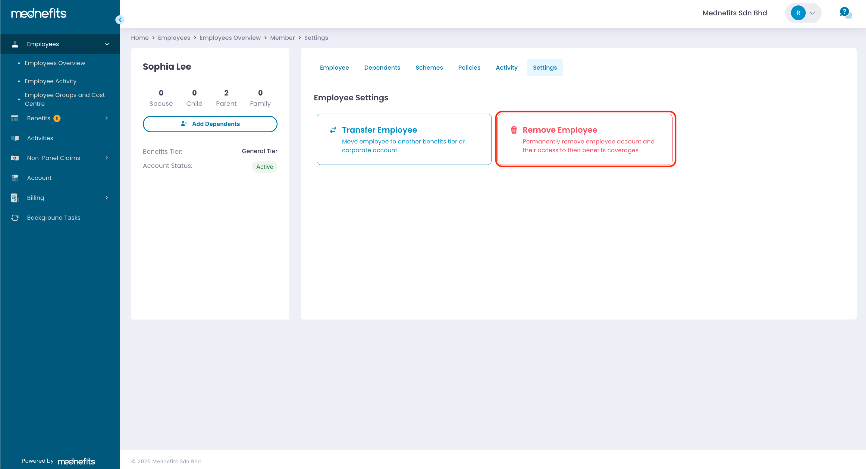 When employees leave the organisation, they will need to be removed from your company's Mednefits account.