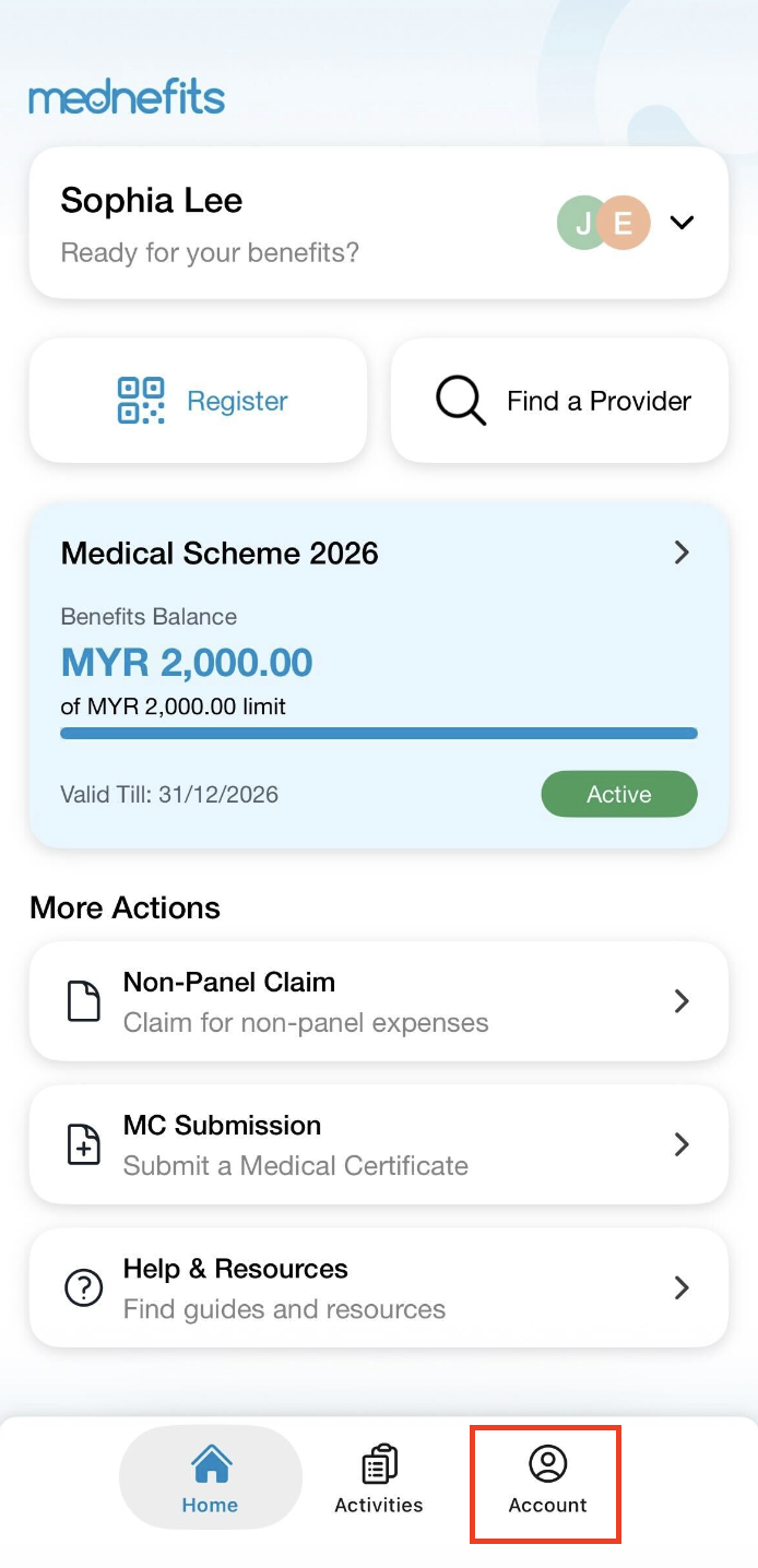 Step 1: On the Mednefits app homepage, tap on Account on the bottom panel.