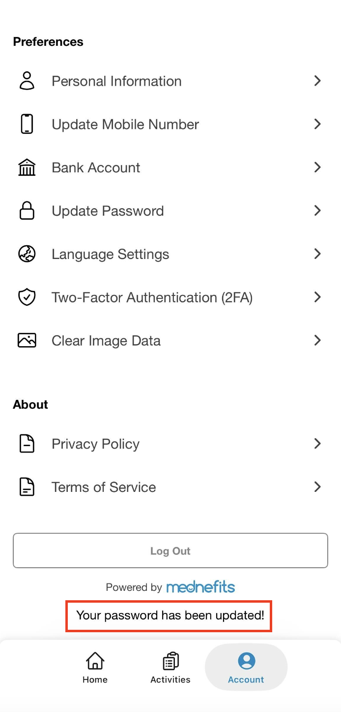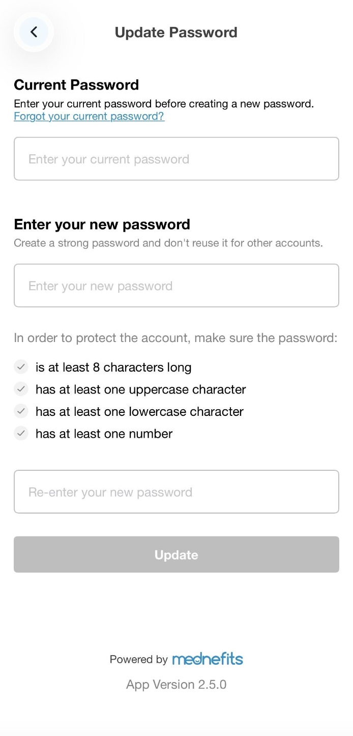 Step 1: Click on My Profile on your Mednefits Dashboard and select Update Password from the bottom left corner.