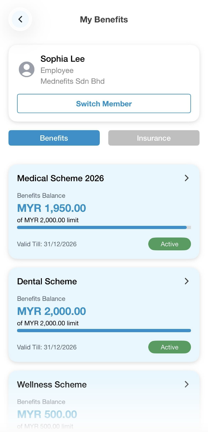 Here's how you can view your Benefits and Benefits Schemes in the Mednefits App: