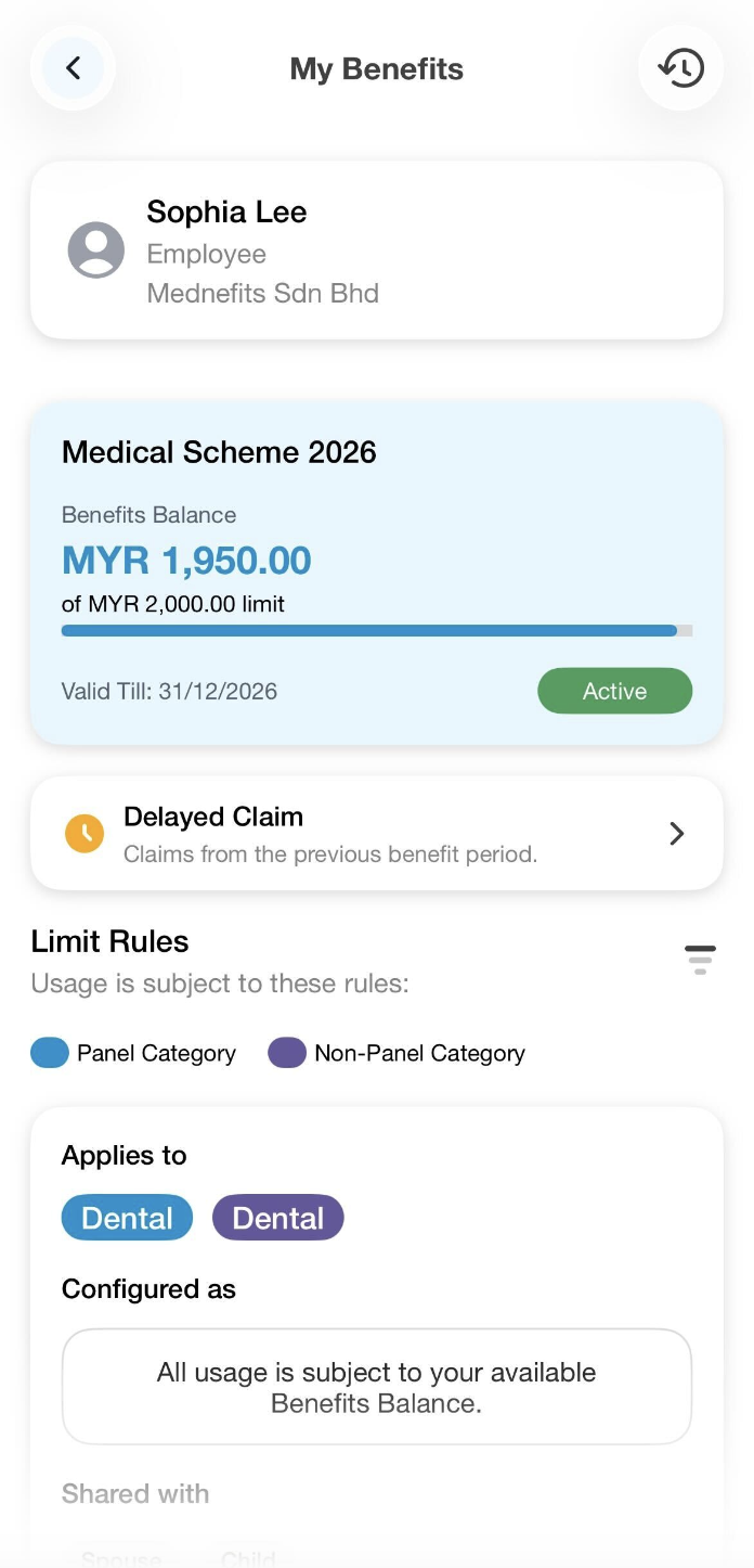 Your Benefits Schemes are how your Benefits are organised within your Mednefits account. Your Benefits Schemes indicate the type of coverage, access, and entitlement amount you have.
