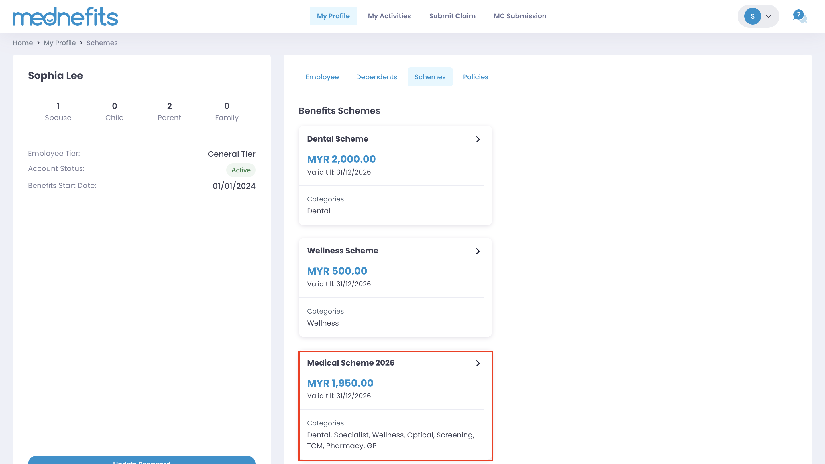 Step 3: Select one of your Benefits Schemes to see more details.