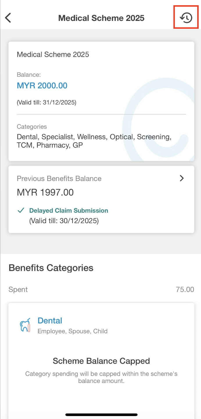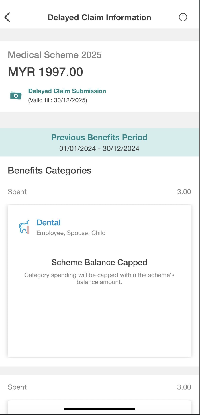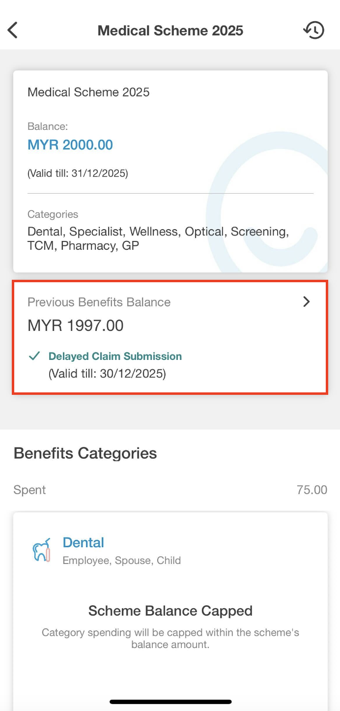 Step 5: If your Benefits Scheme has a Previous Benefits Balance with Delayed Claim Submission, you may click on it to know more.