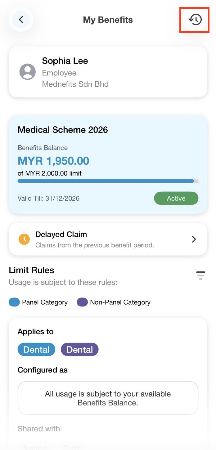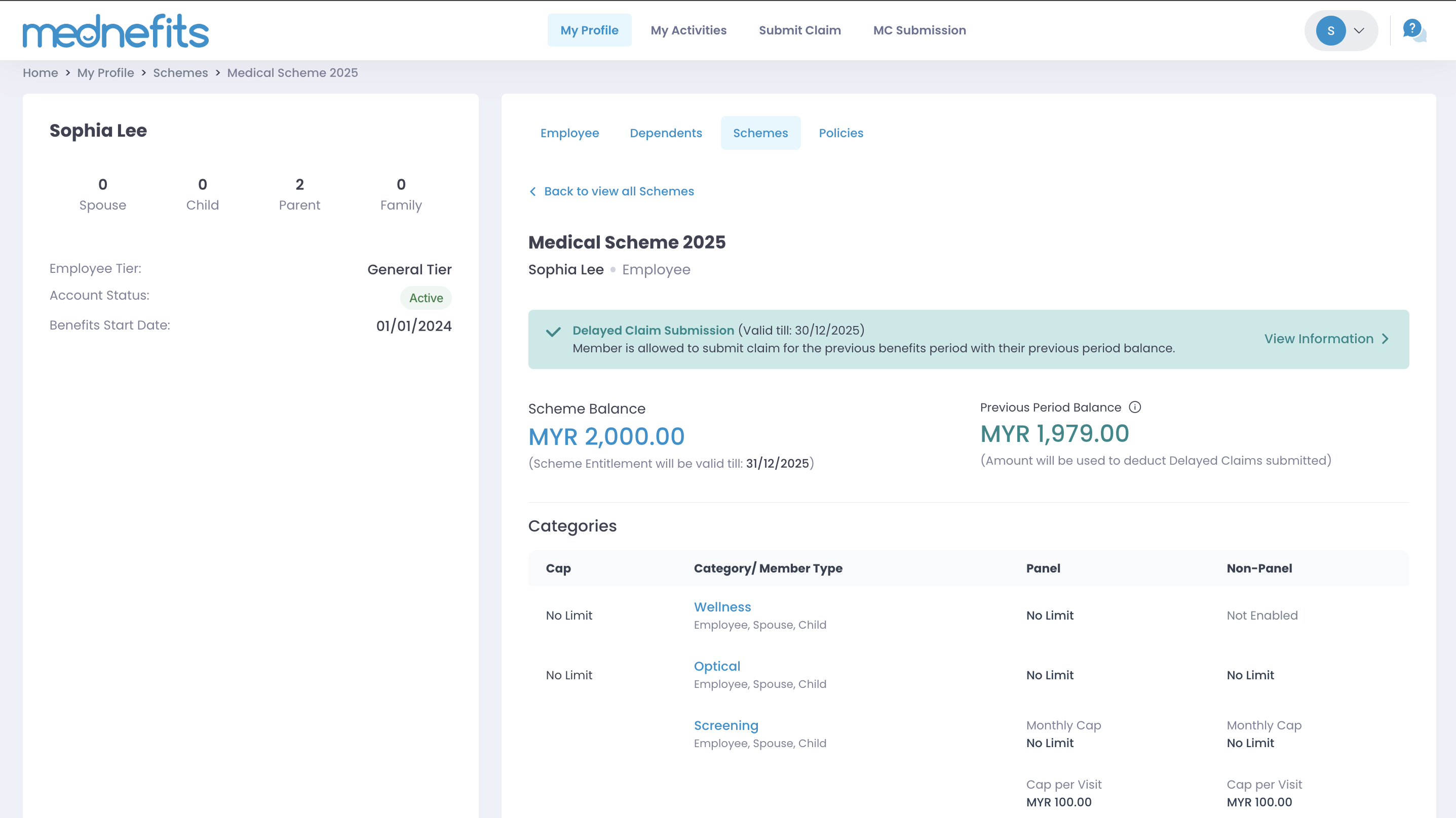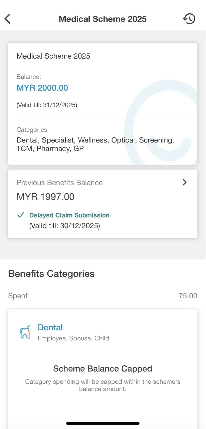 - Rollover: Balance from your previous scheme and it allows you to submit your past claim if only your company has enabled it