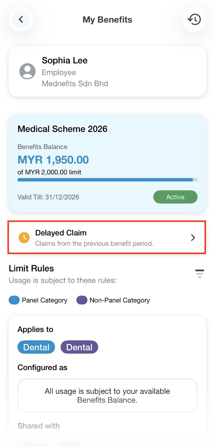 - The Delayed Claim indicator will only be shown when the scheme is still within the rollover period and need to be utilized by the respective period.