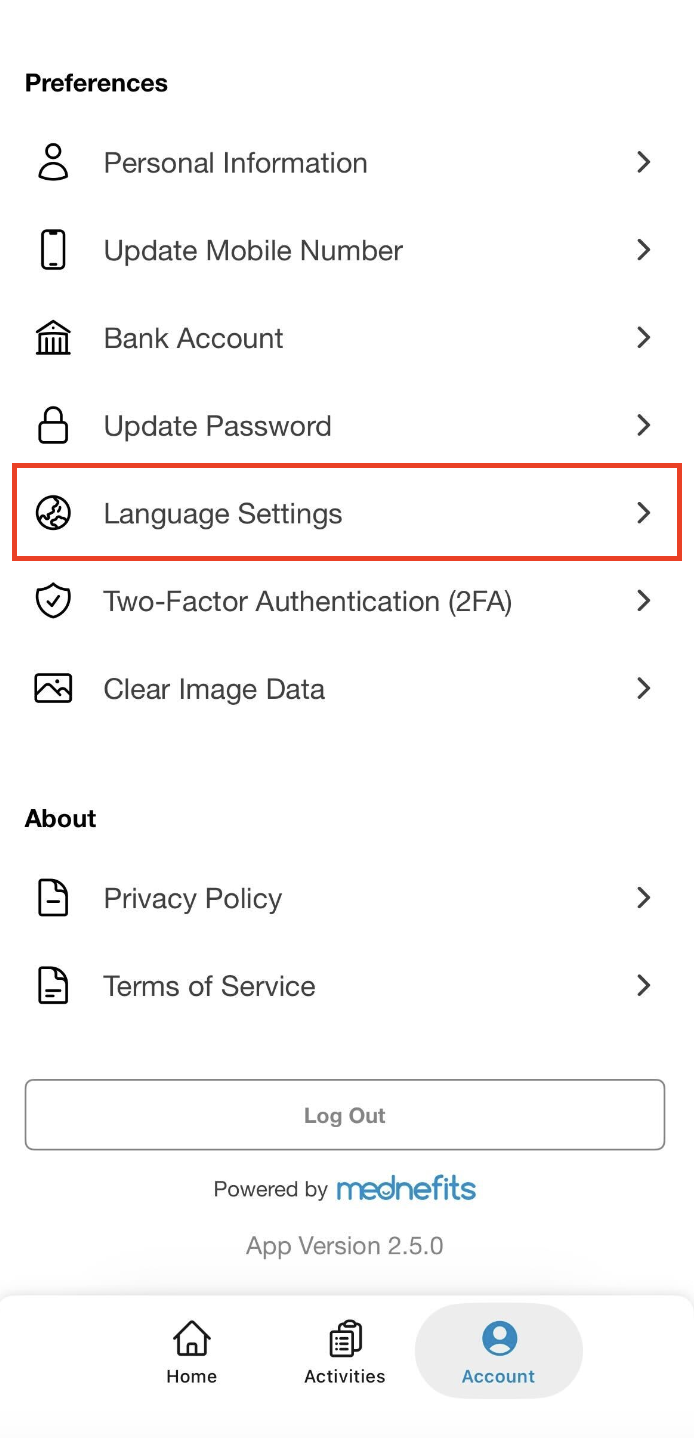 After you've selected your preferred language, you may return to your Mednefits app and continue using it!