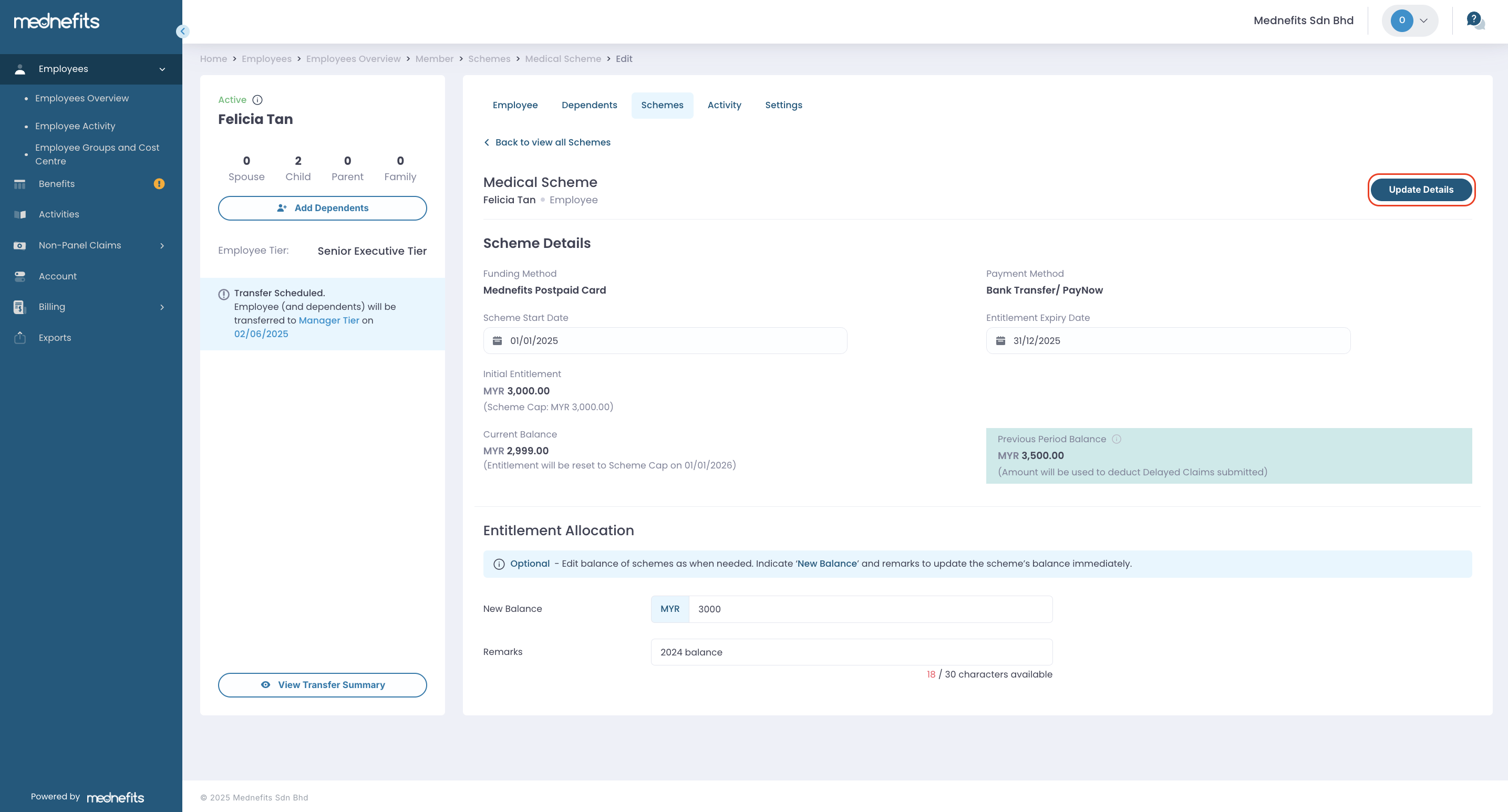 Step 4: Input the New Balance and Remarks (optional), then click Update Details to save the changes.