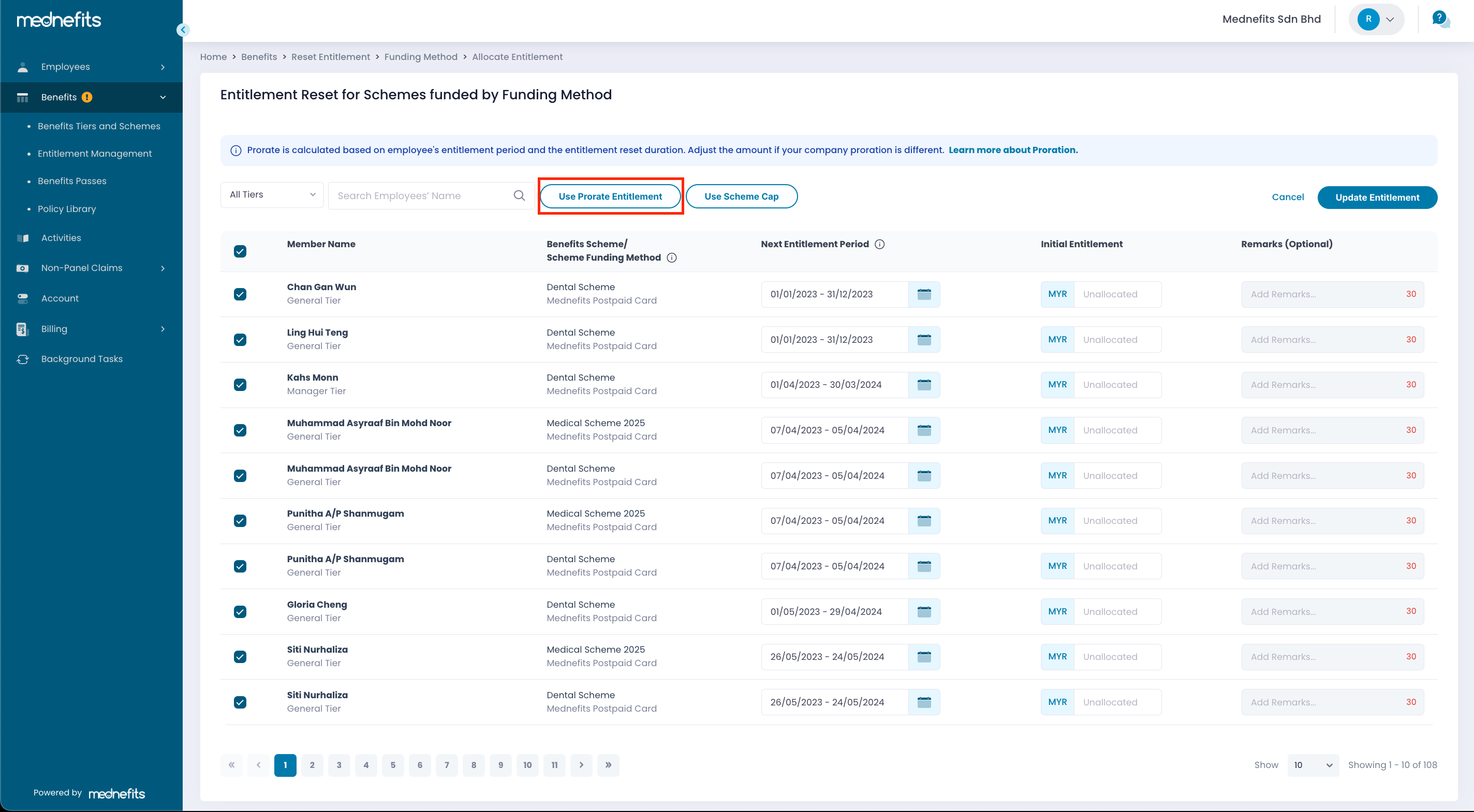 Then, you can click Prorate Entitlement to prorate the employee's entitlement for the next benefits period.