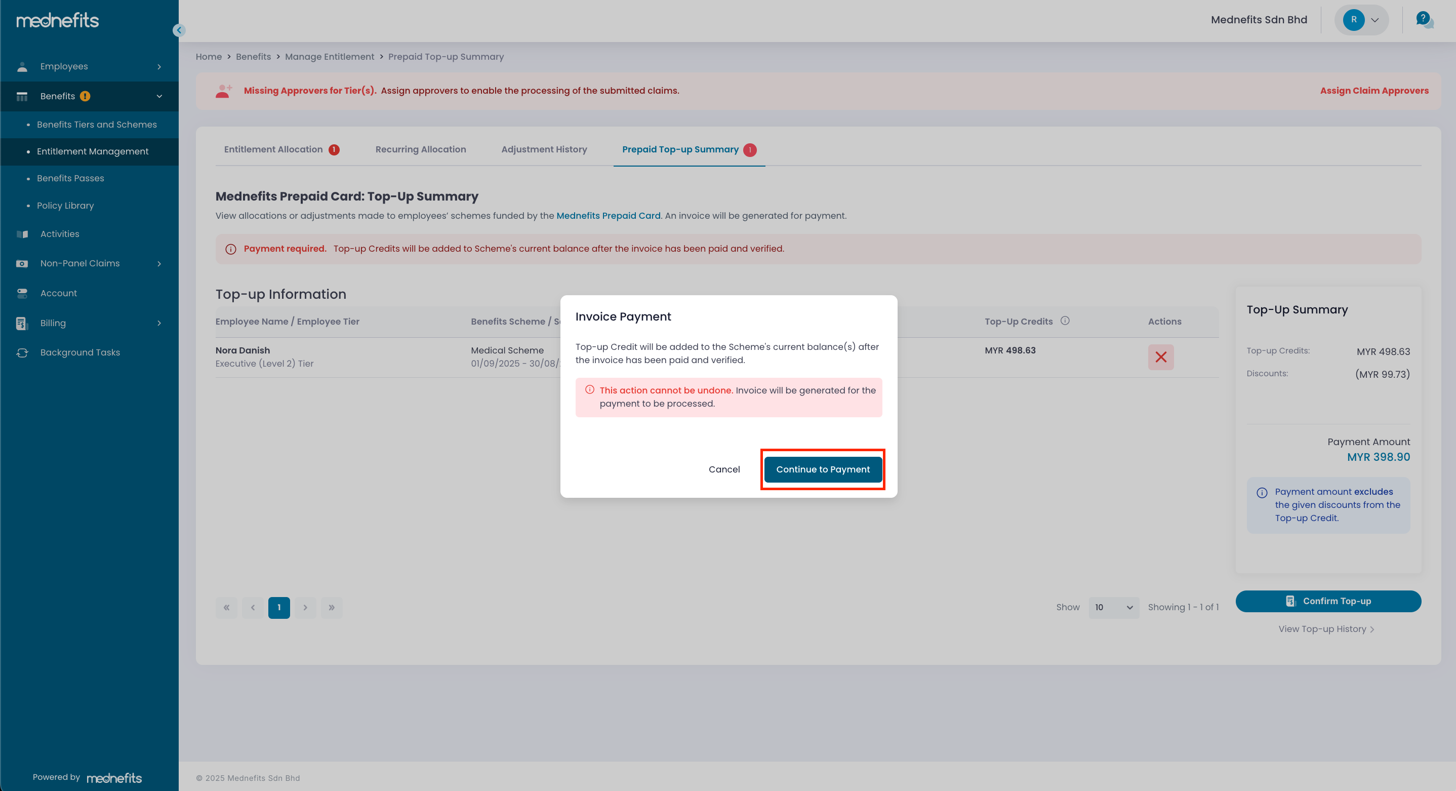 For company funding with Prepaid Card, simply follow the steps below to proceed with a payment: