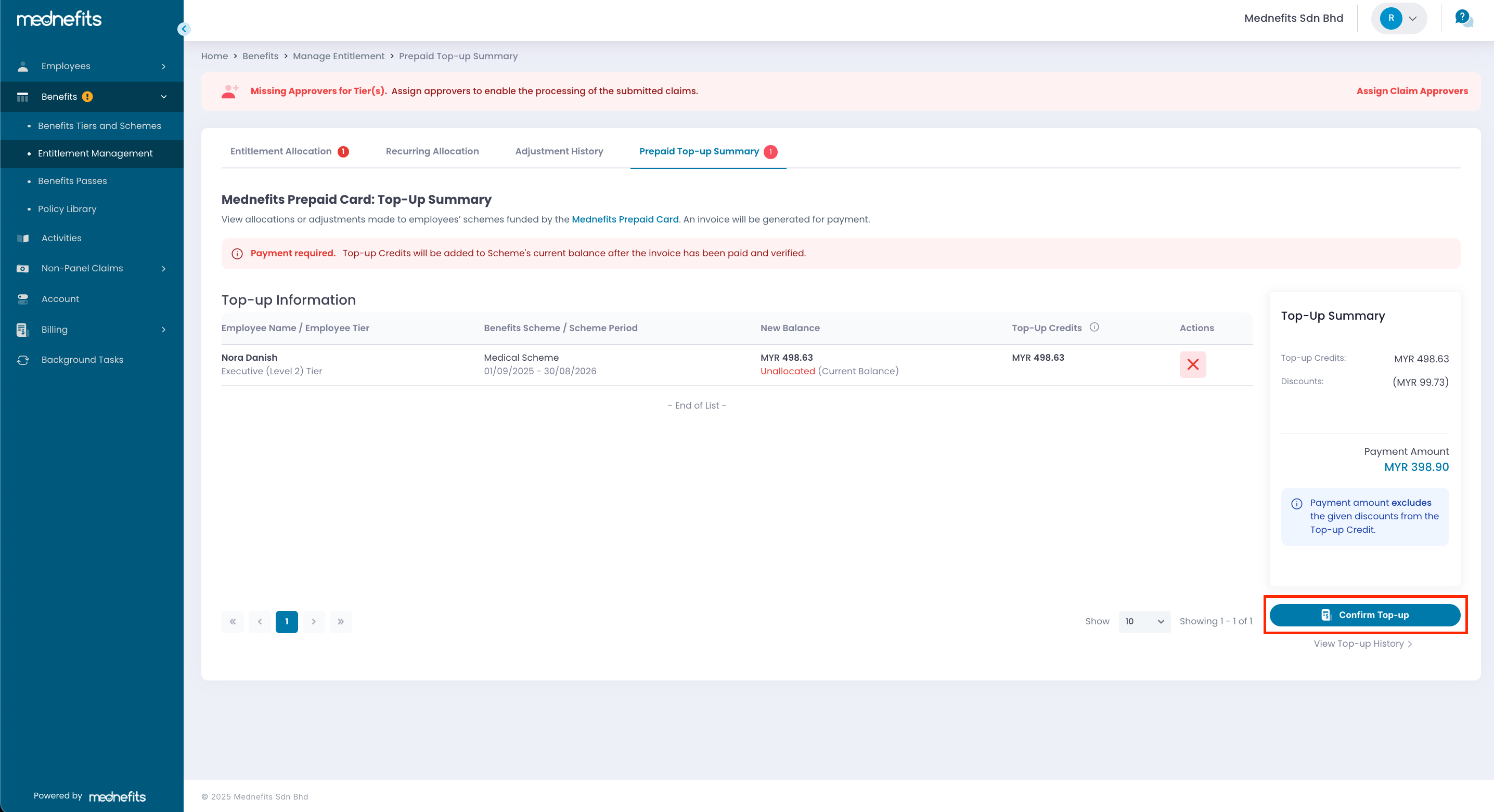 Step 4: On the Prepaid Top-Up Summary page, you can view the summary and proceed to confirm the top-up by selecting Confirm Top-up.