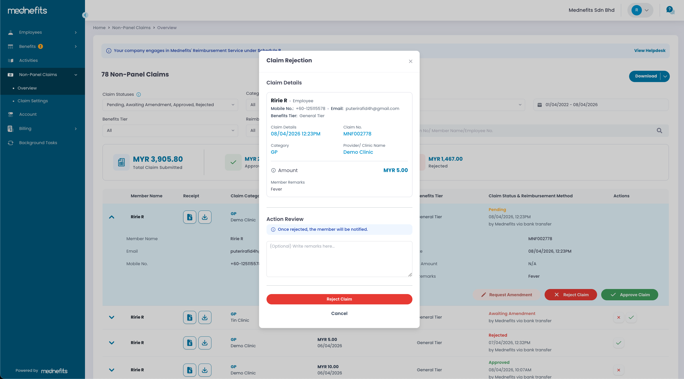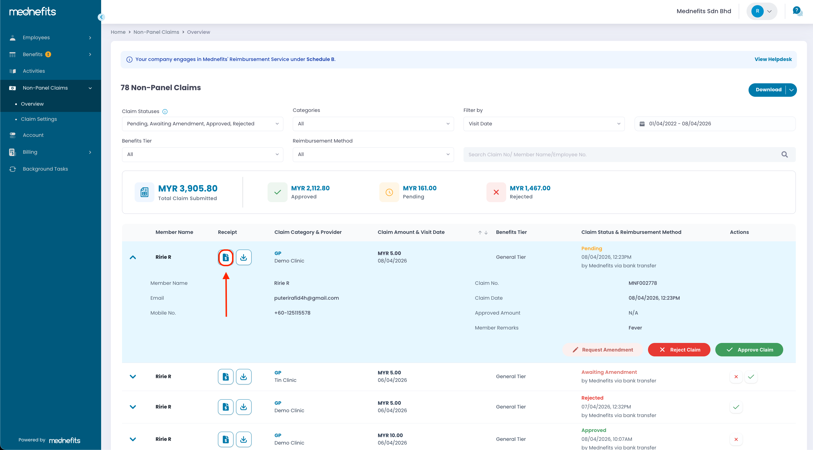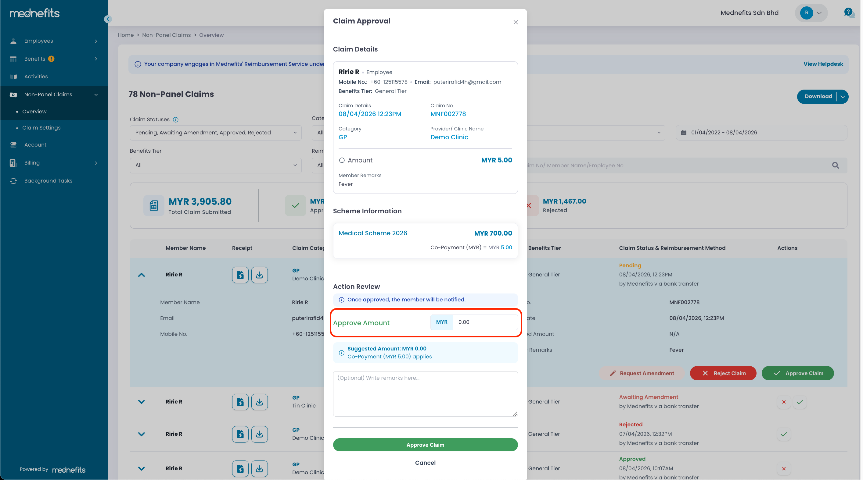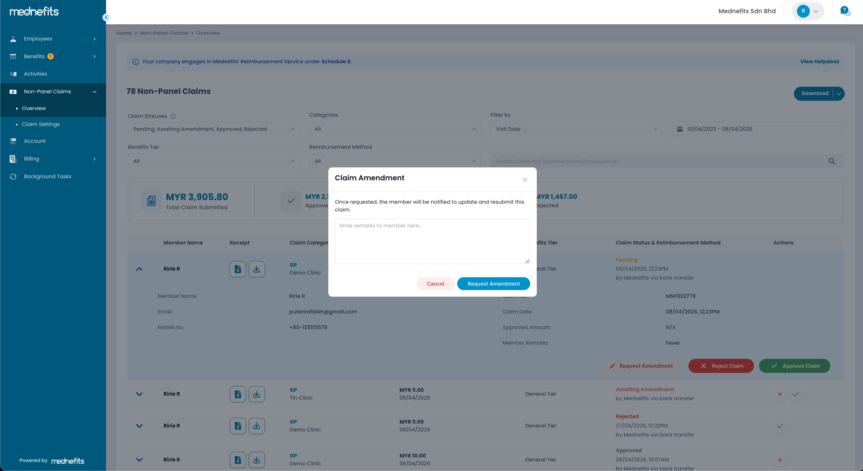 HR can now request employees to amend their claims before processing them. This new feature gives employees the opportunity to correct their claims and avoid rejection. Once the amendment request is submitted, the claim status will change from Pending to Awaiting Amendment. Employees will be notified via the Mednefits app and email to take further action.