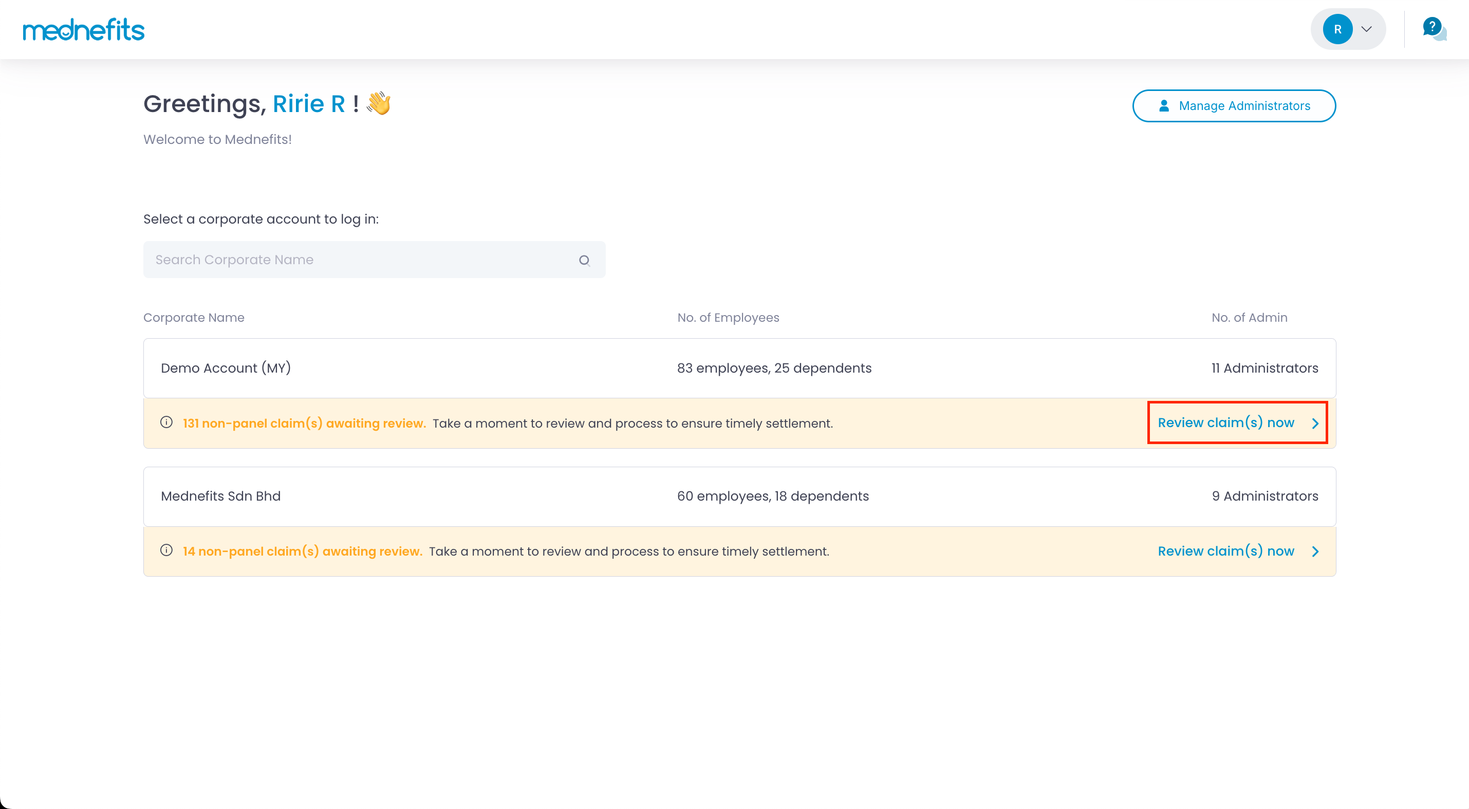 If you're managing multiple corporate accounts, you’ll now see a number next to each company showing how many non-panel claims need your review.