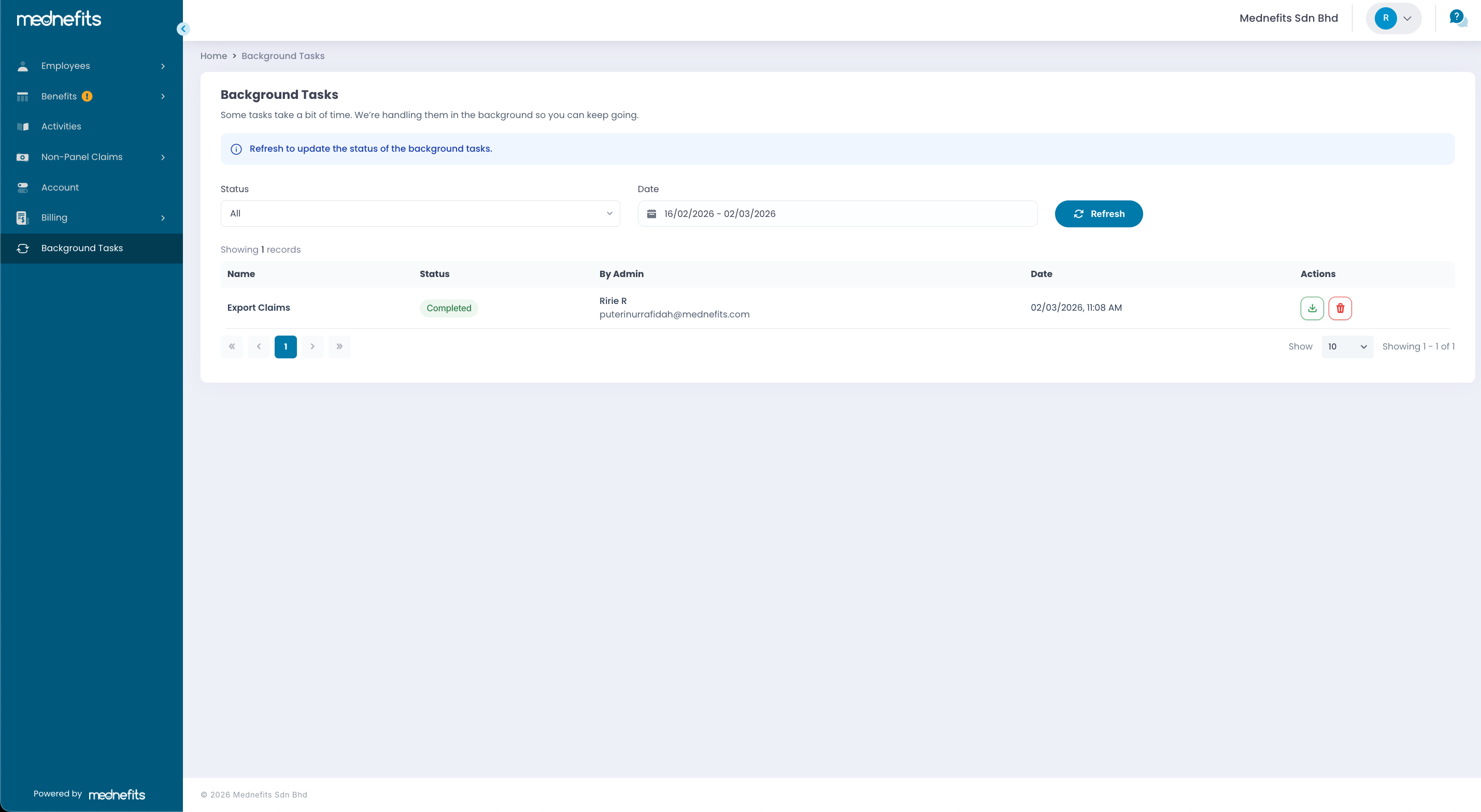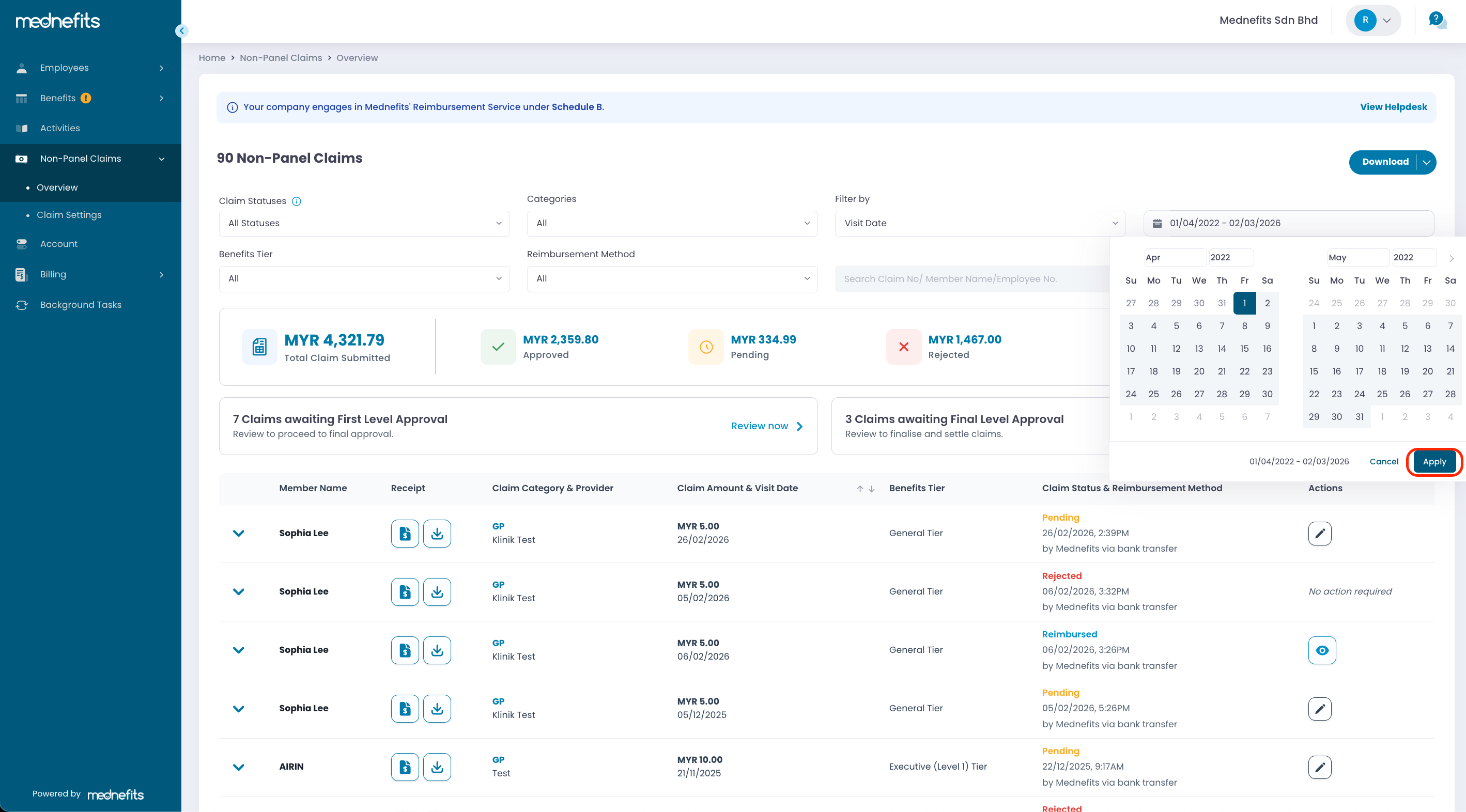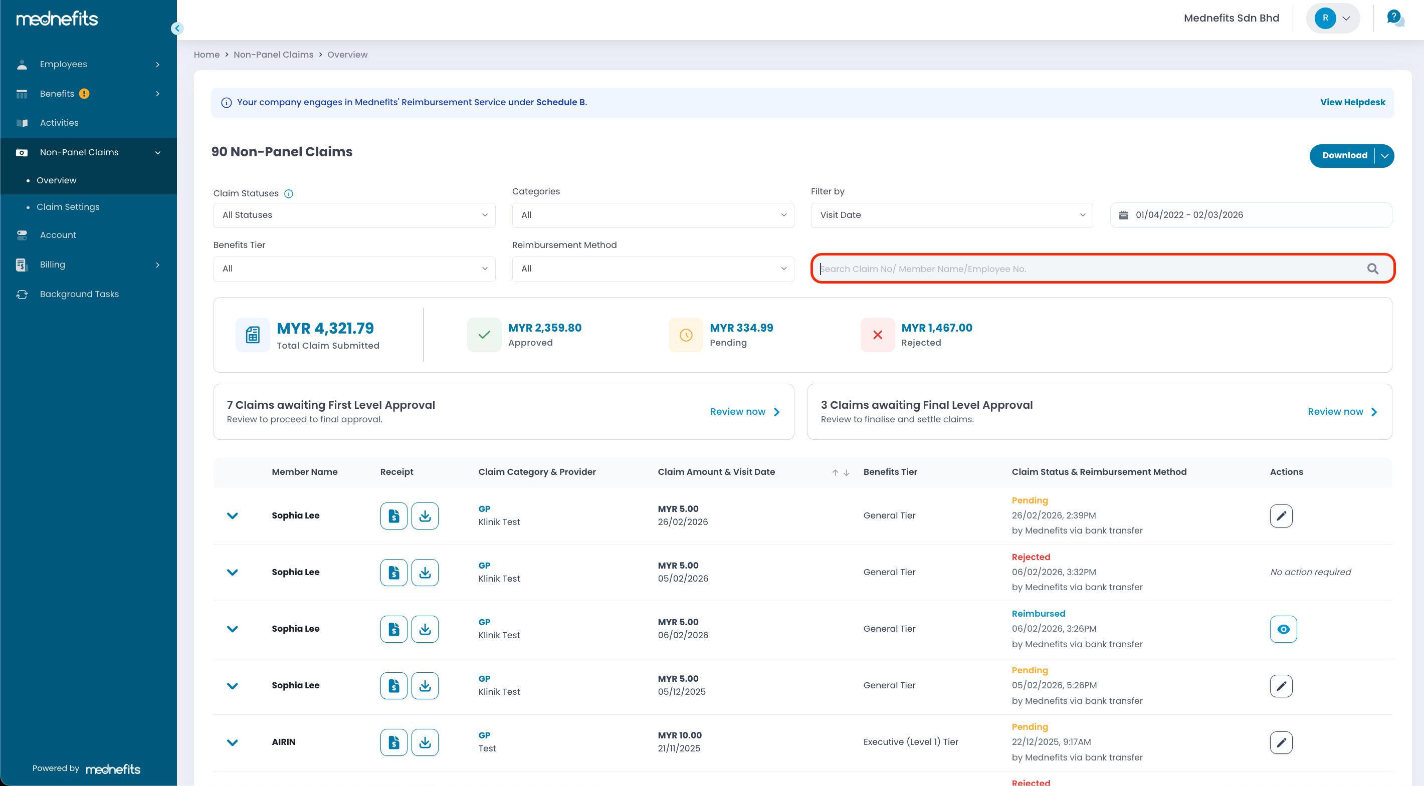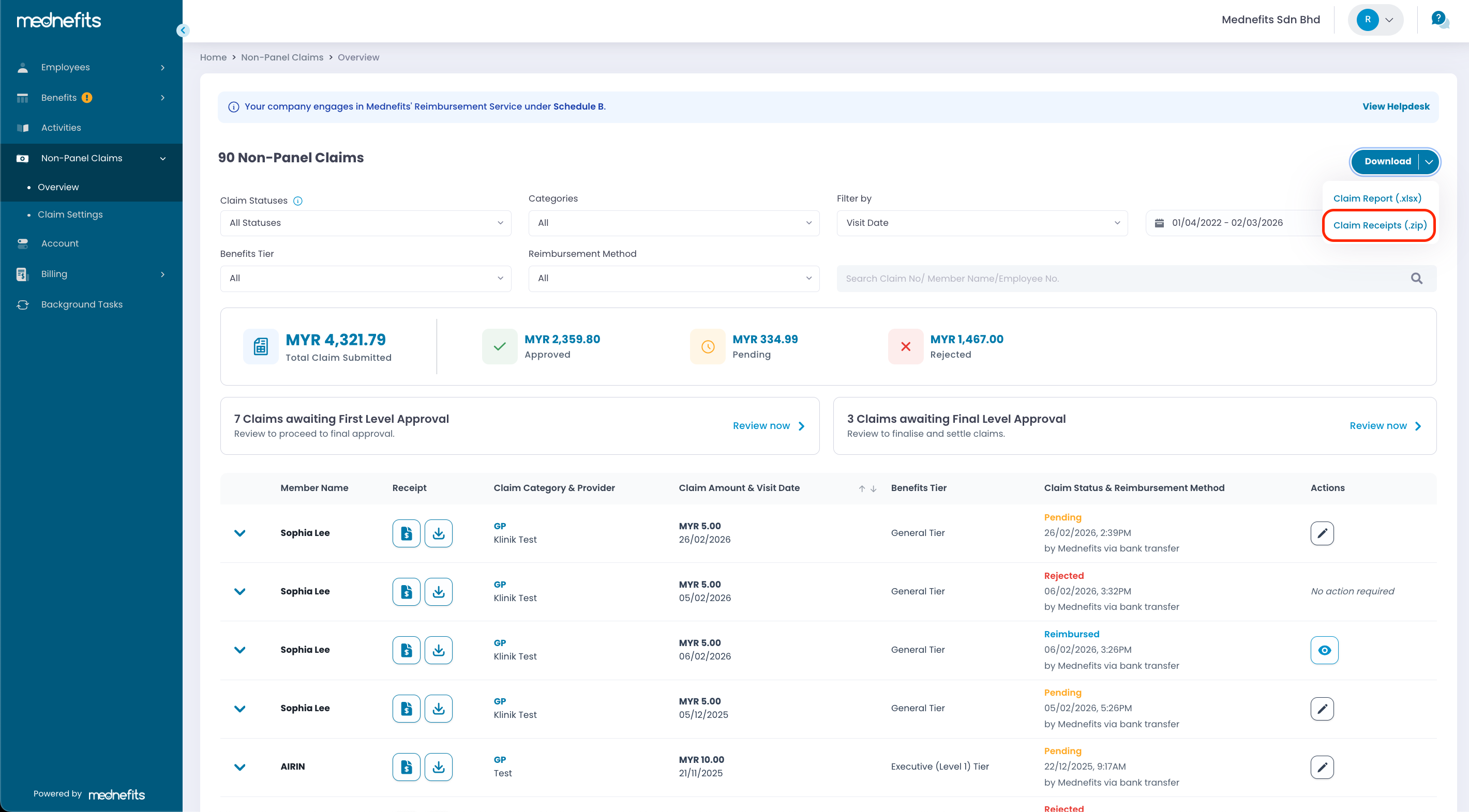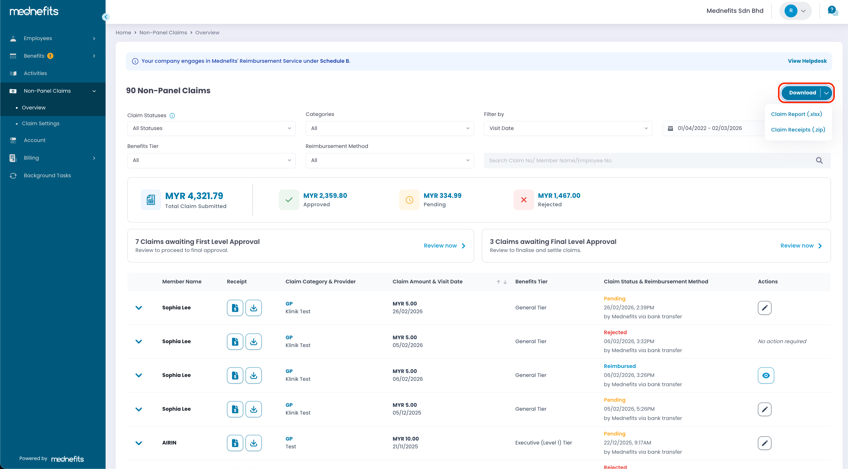 You can download non-panel claims submitted by your employees in Excel format via the HR Portal.