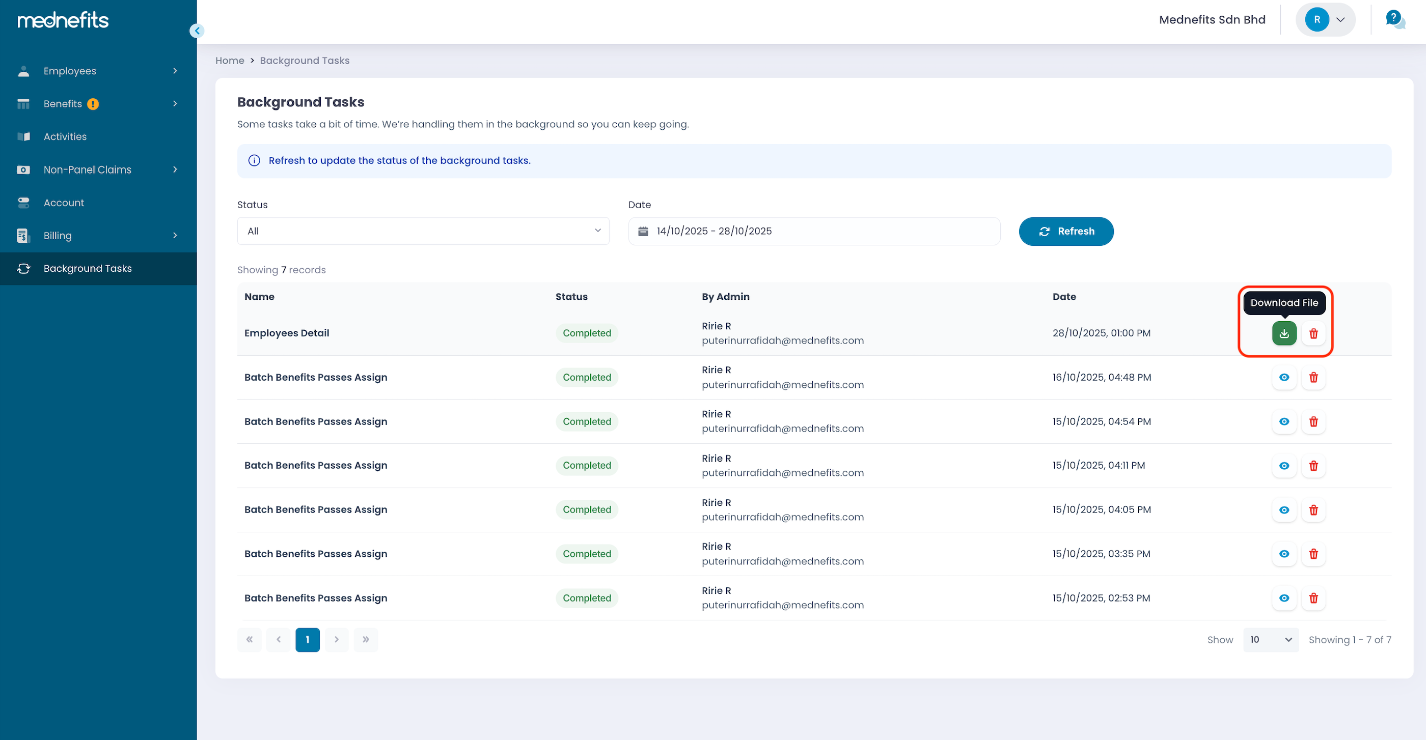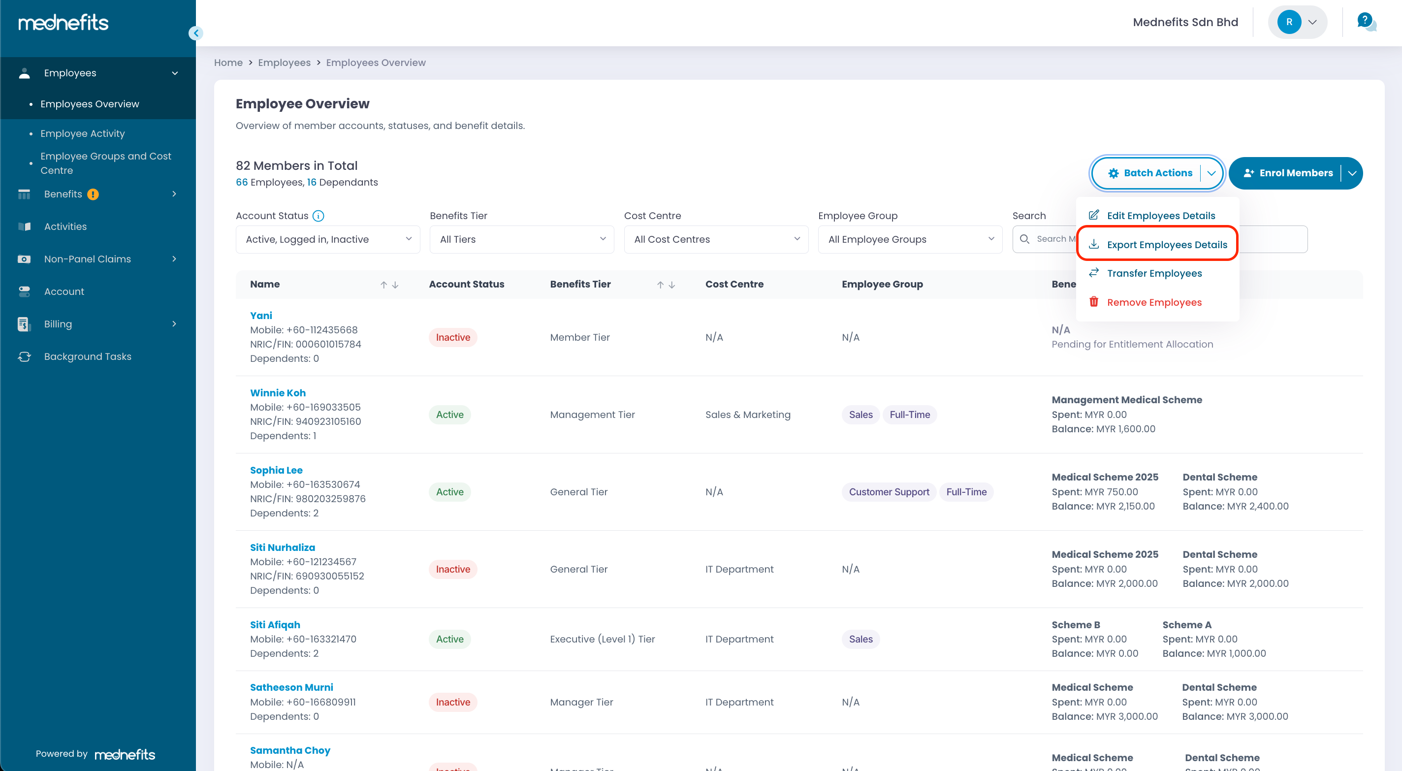 Mednefits' Company HR Portal offers the feature of exporting the details of your enrolled employees!