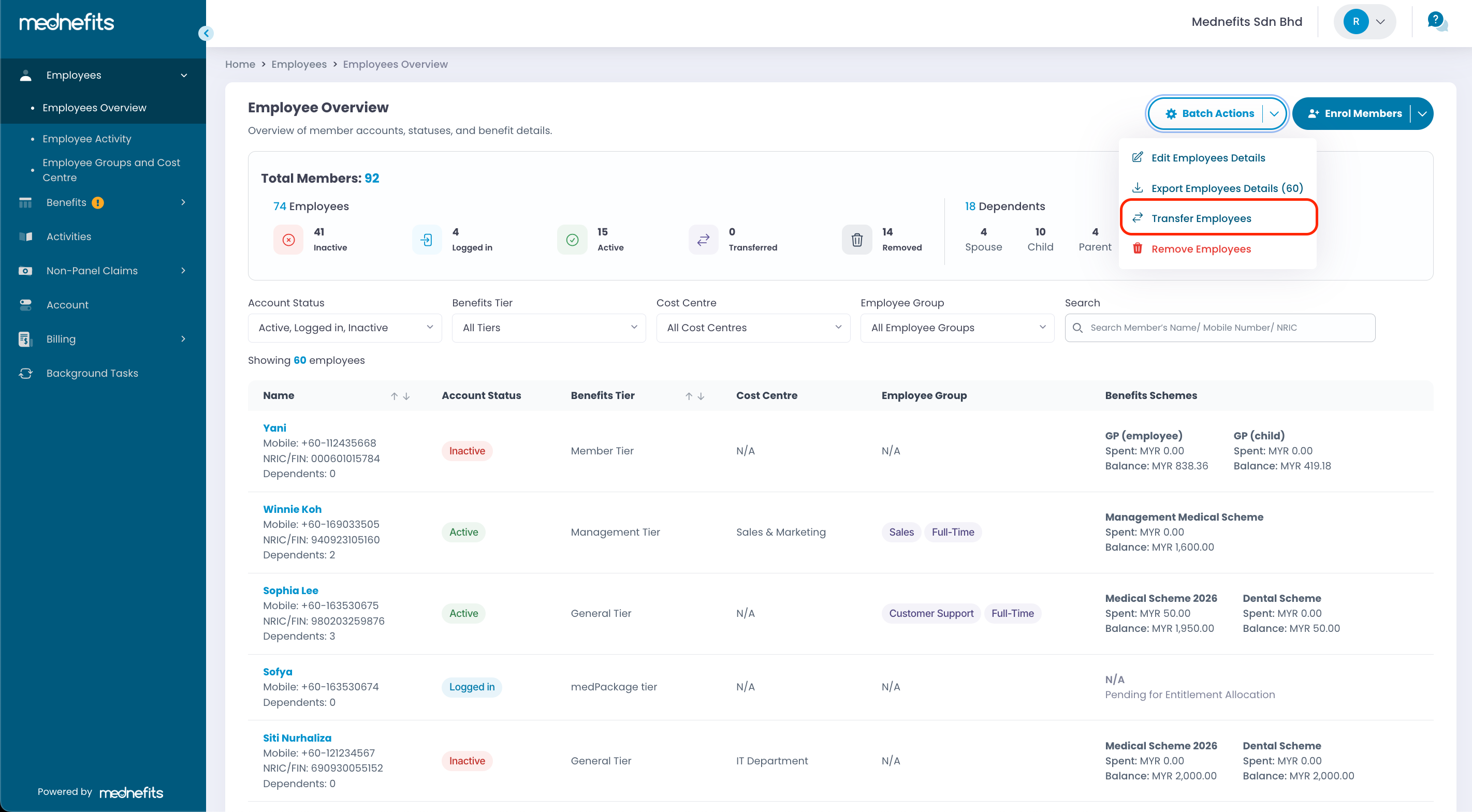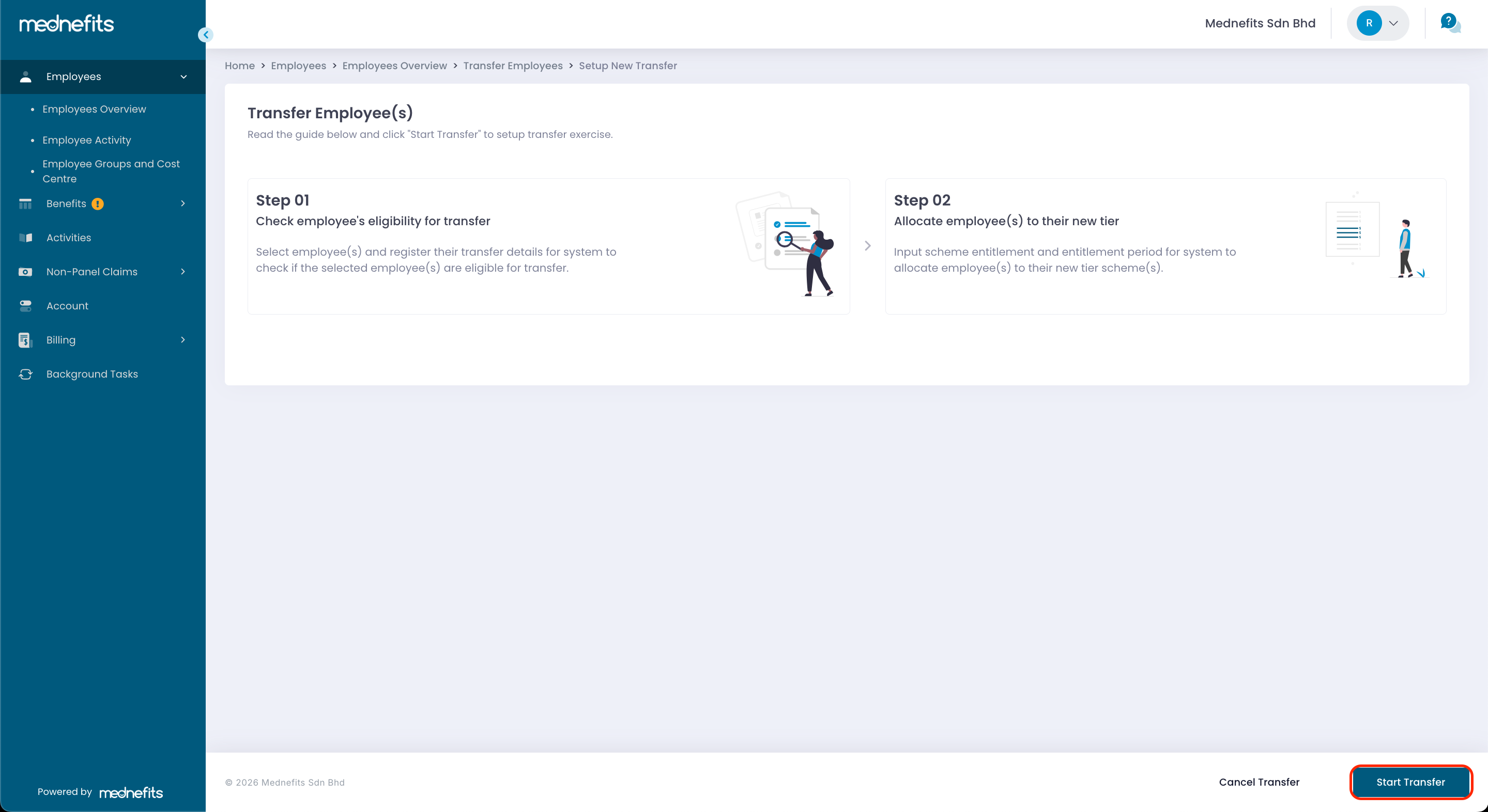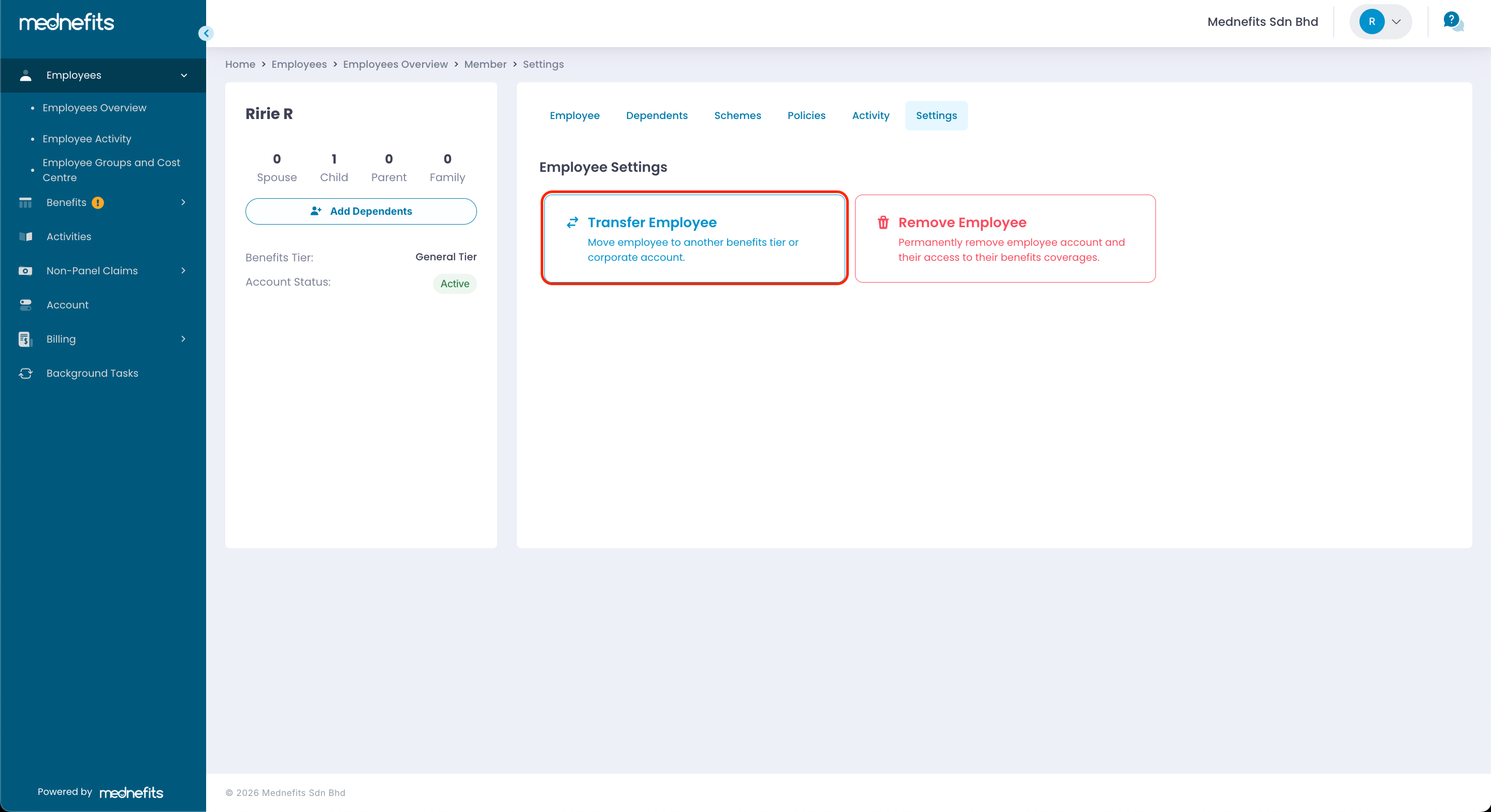 With our new released feature, you may now transfer your employee via Mednefits HR portal.