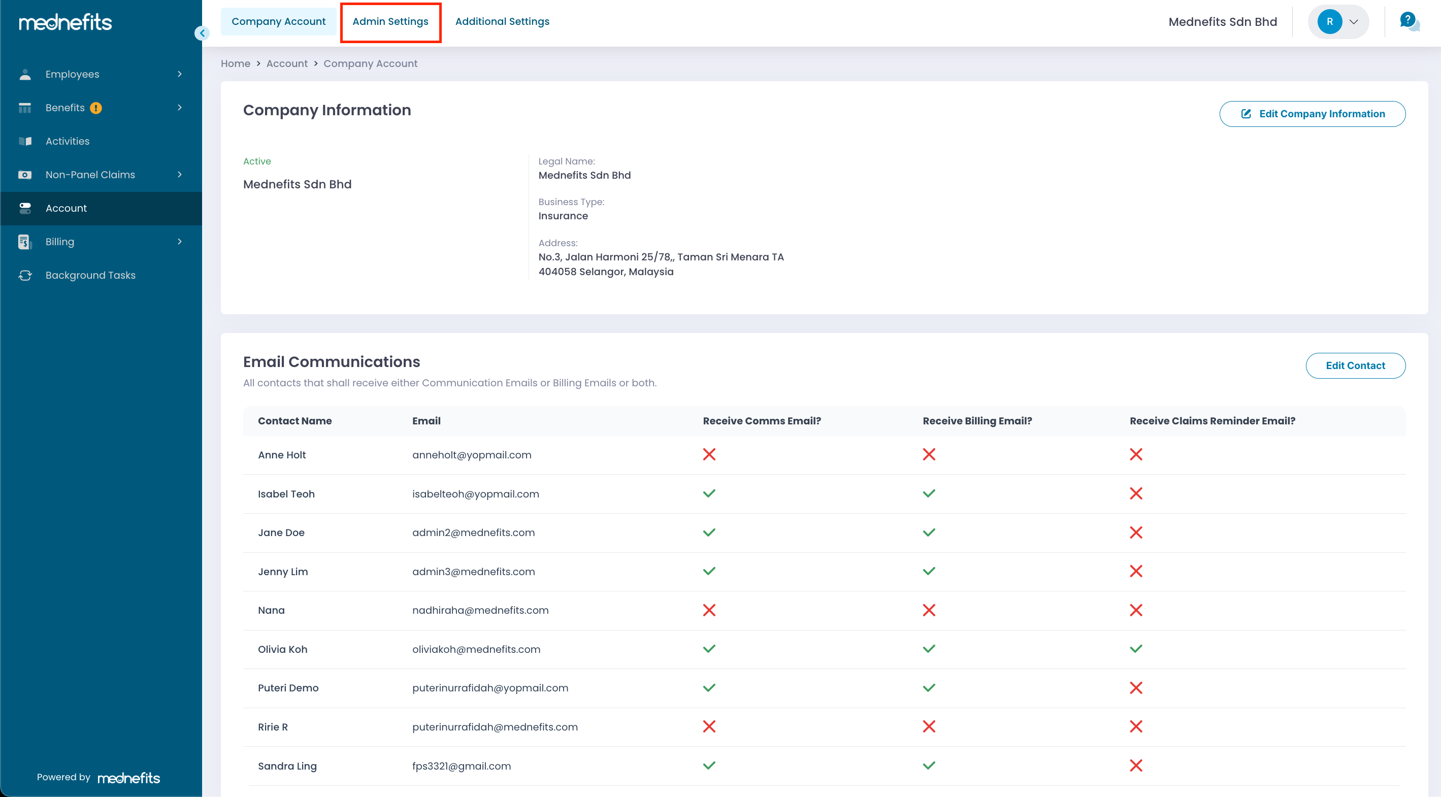 Step 1: Click on Account > Admin Settings.