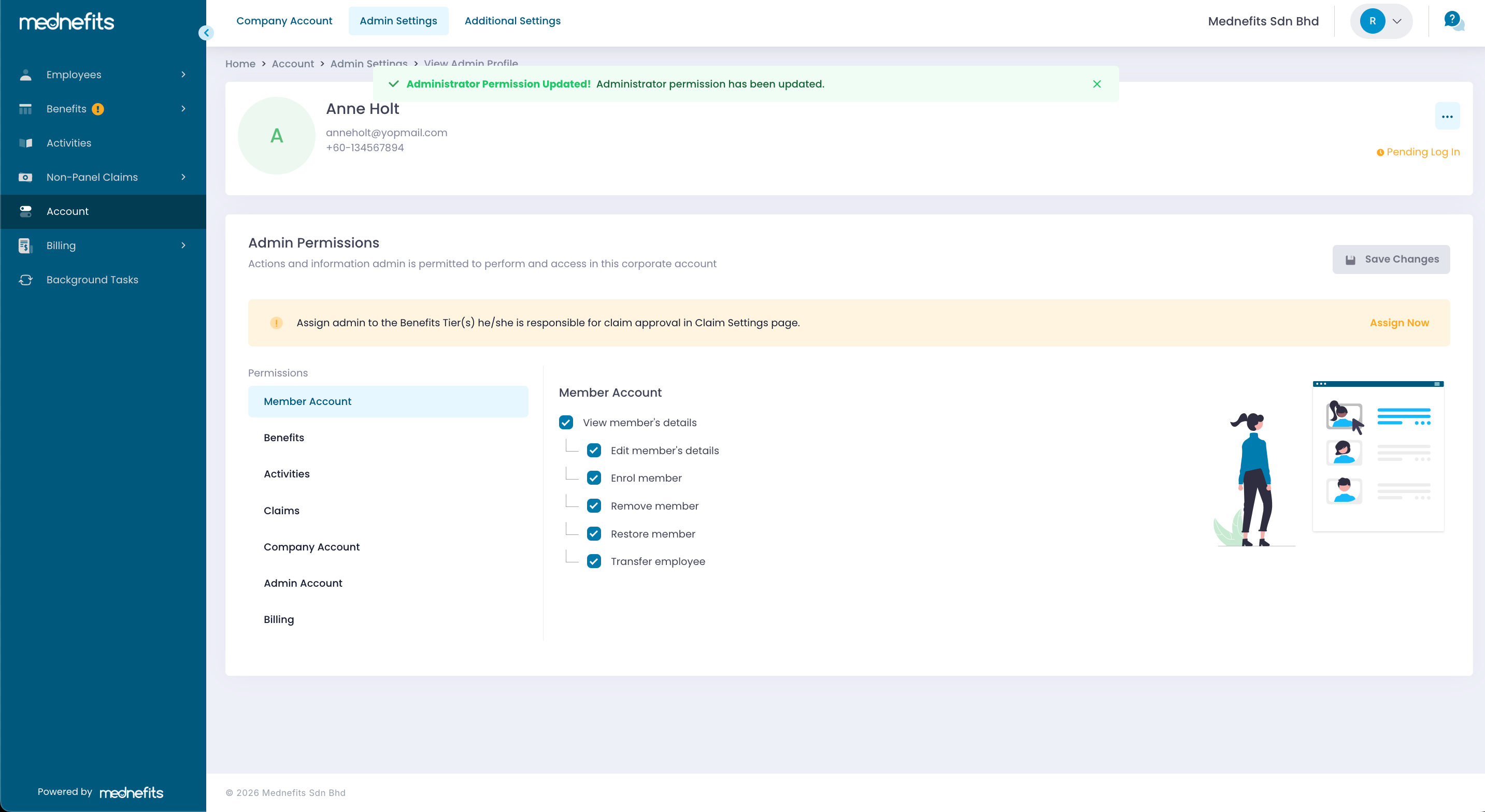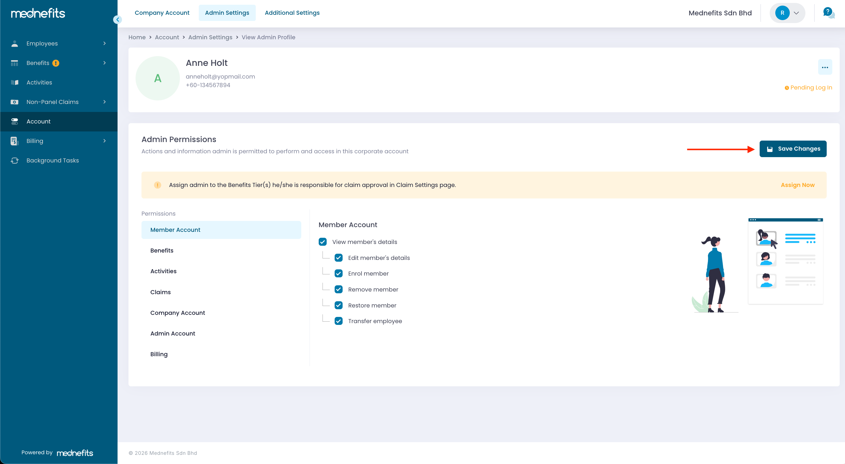 Step 3: You may edit the permission based on their roles and click on Save Changes. (Please be noted that the editing of permission can only be done by Primary Administrator)