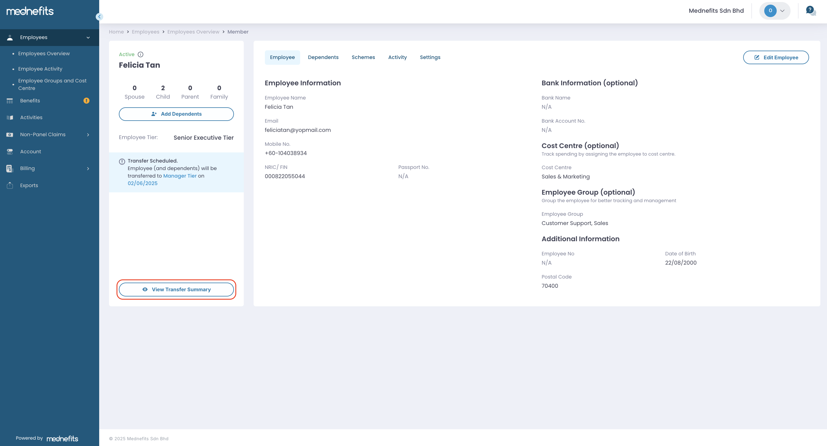 Step 1: Navigate to Employees > Employee Activity > Search Employee's Name > View Transfer Summary.