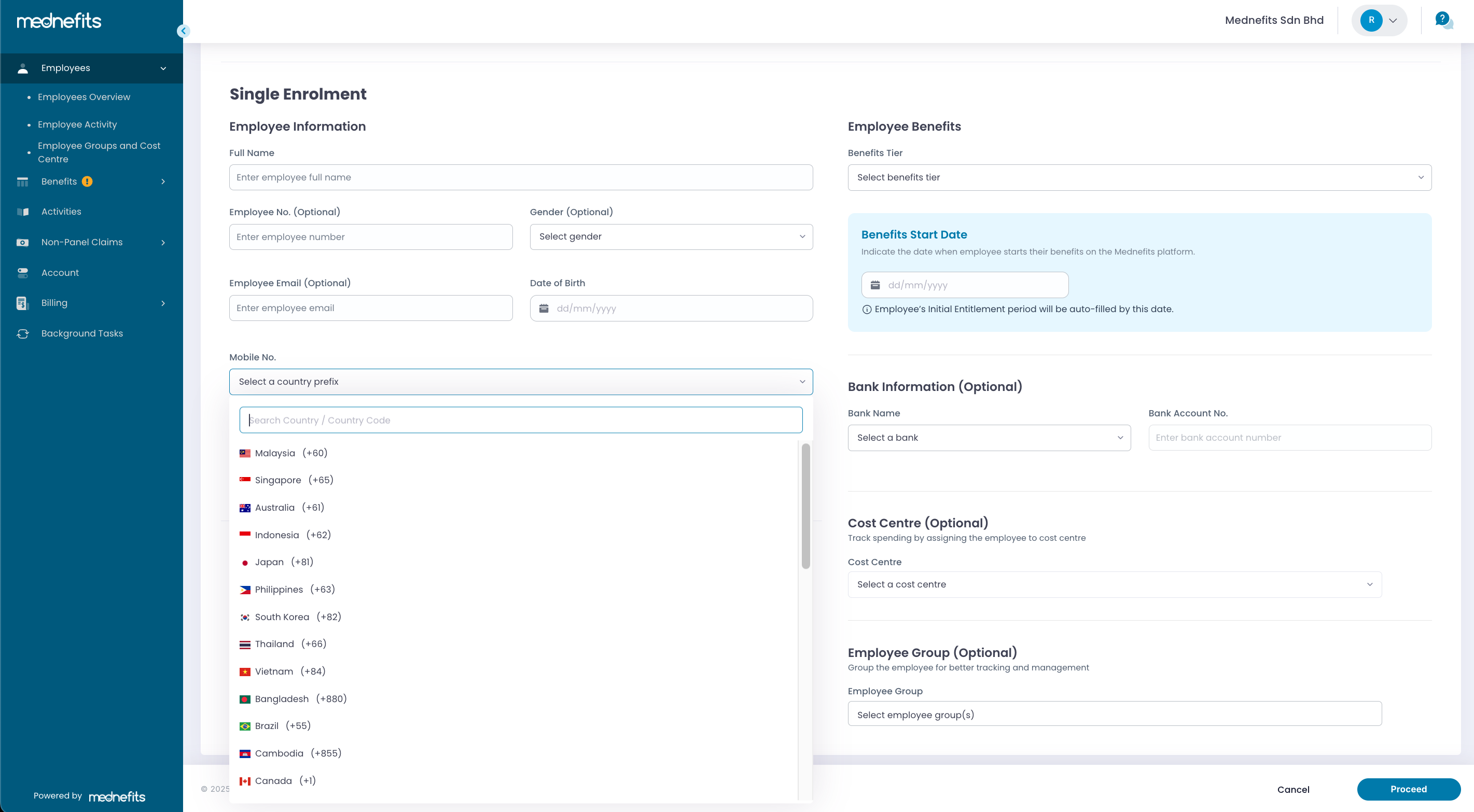 - Mednefits uses mobile numbers as login IDs, and activation details will be sent by SMS, so please make sure that your employees' mobile numbers are correct!