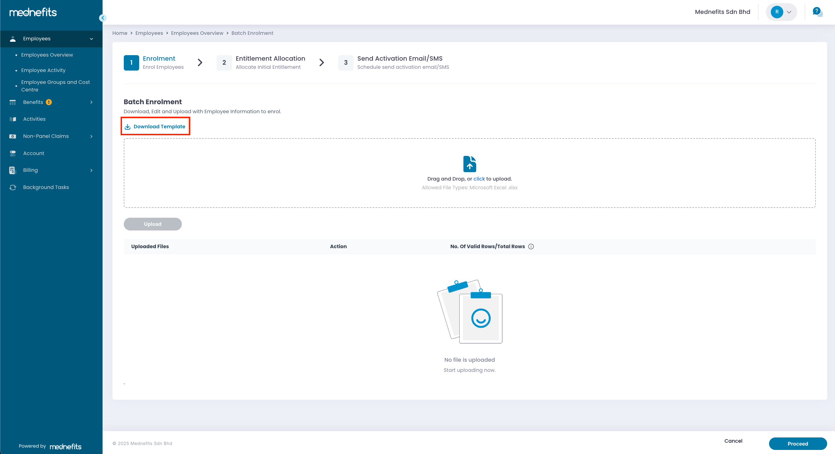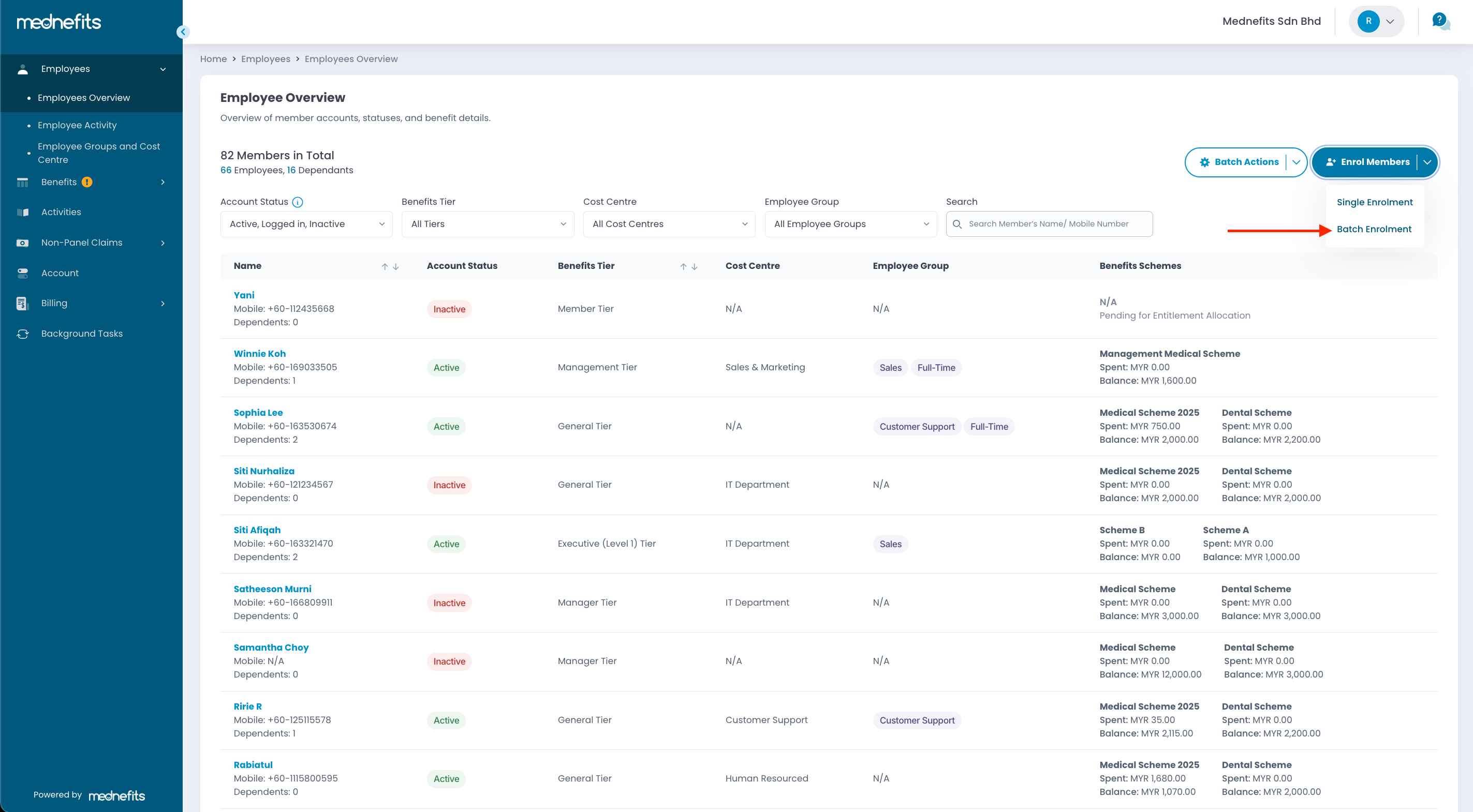 Step 1: On the Employees Overview page, select Batch Enrolment under Enrol Members.