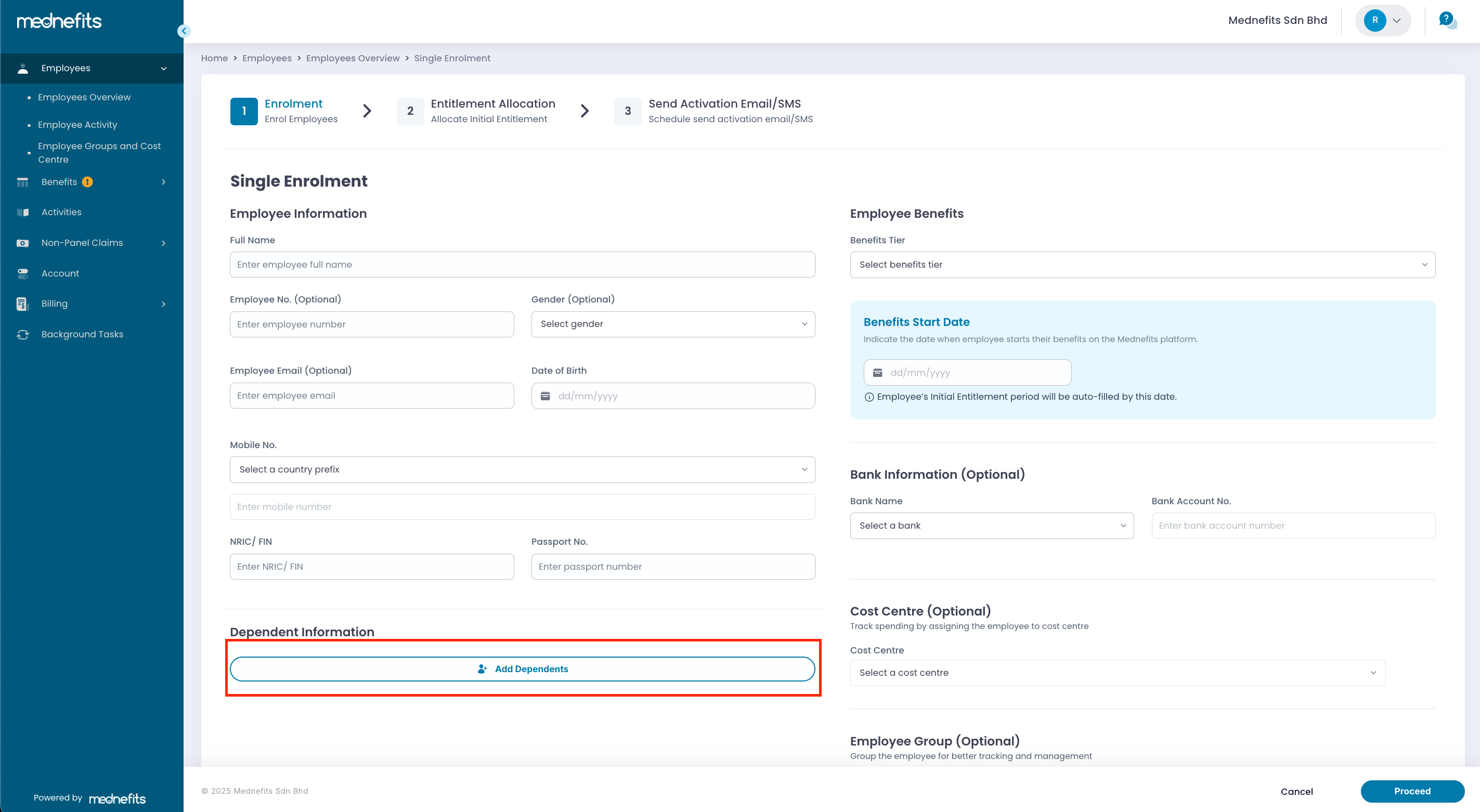 Step 3: If you are enrolling dependents as well, click Add Dependents to add.