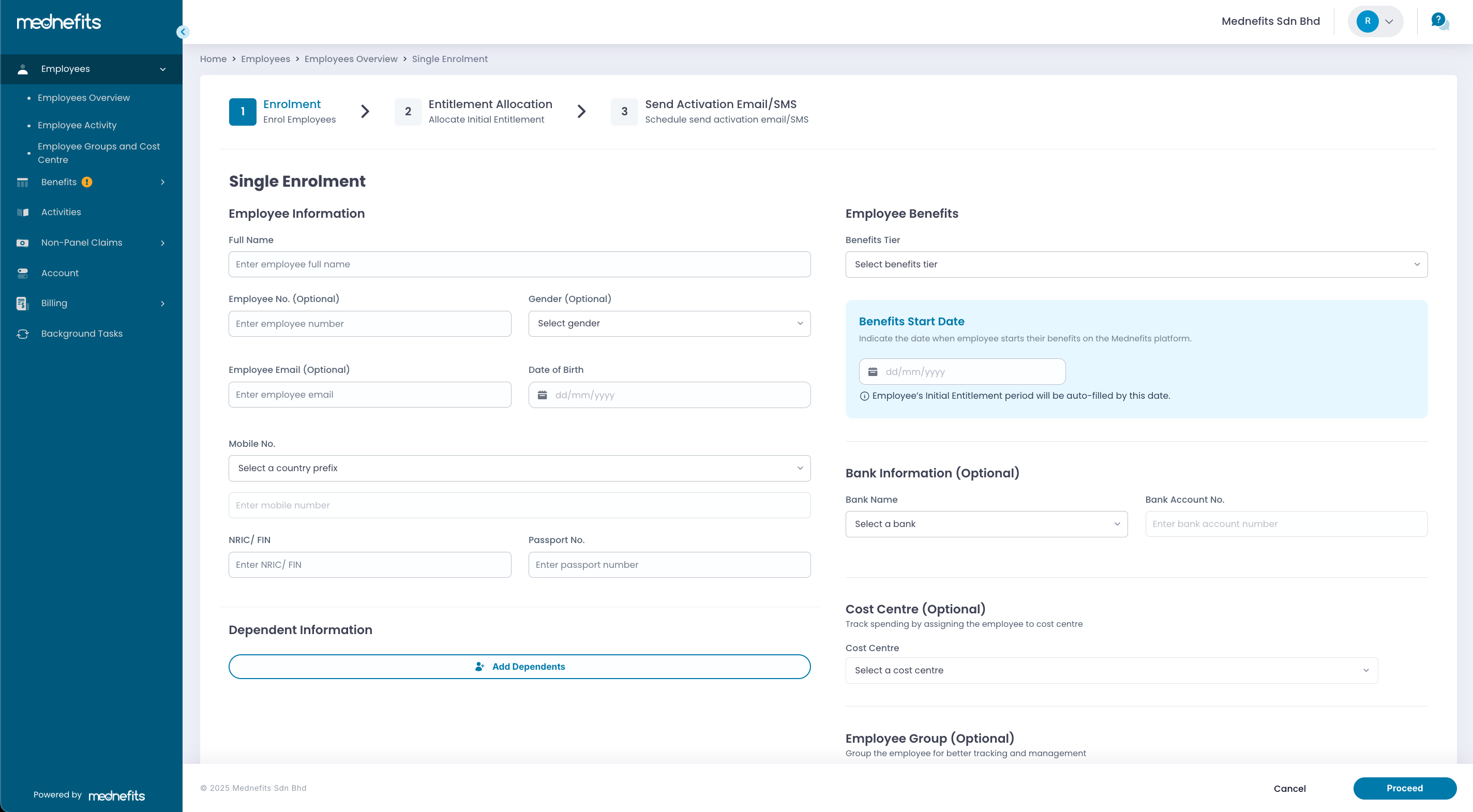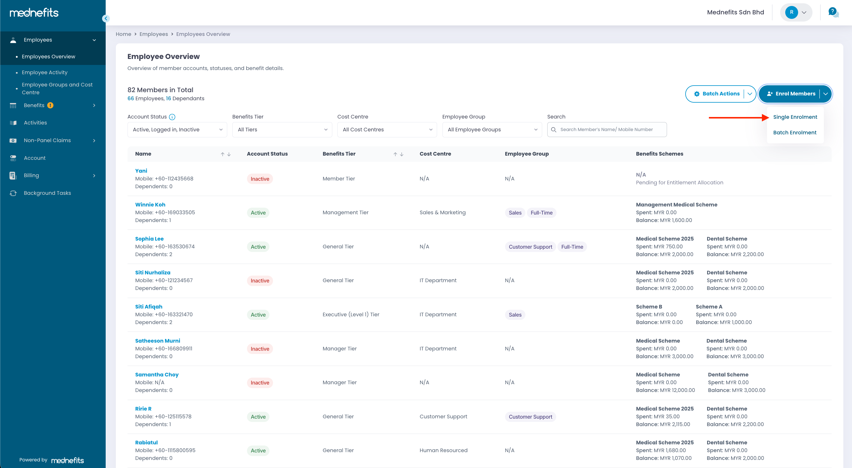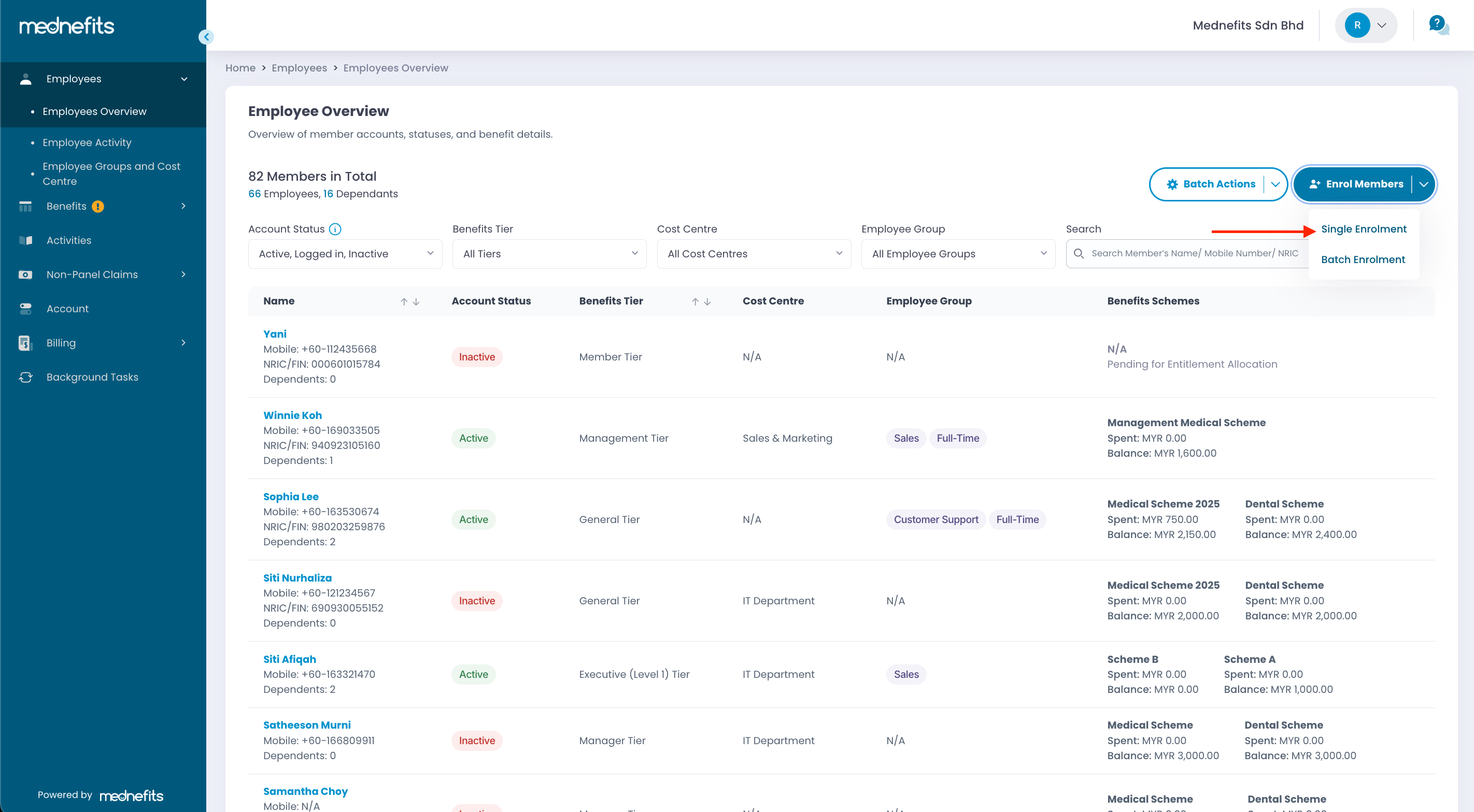 Step 1: On the Employees Overview page, select Single Enrolment under Enrol Members.