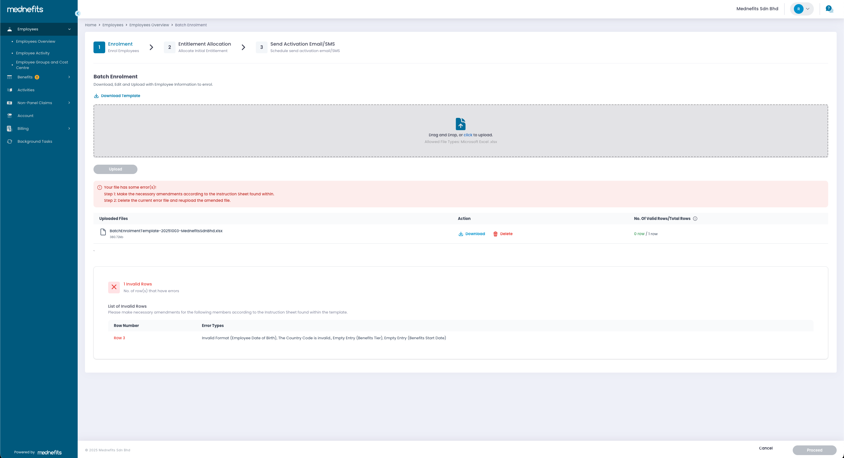 Make the required amendments in the enrolment template by referring to the error list displayed.