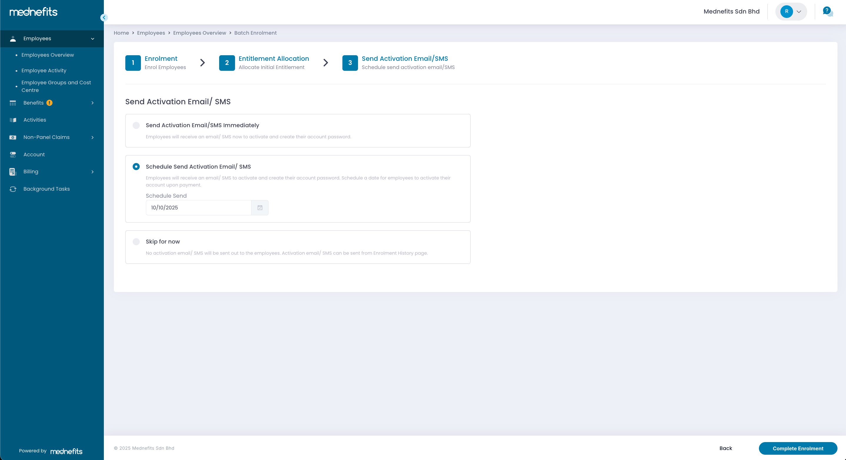 - Schedule Send Activation Email / SMS - activation email/ SMS will be sent out on the scheduled date indicated.