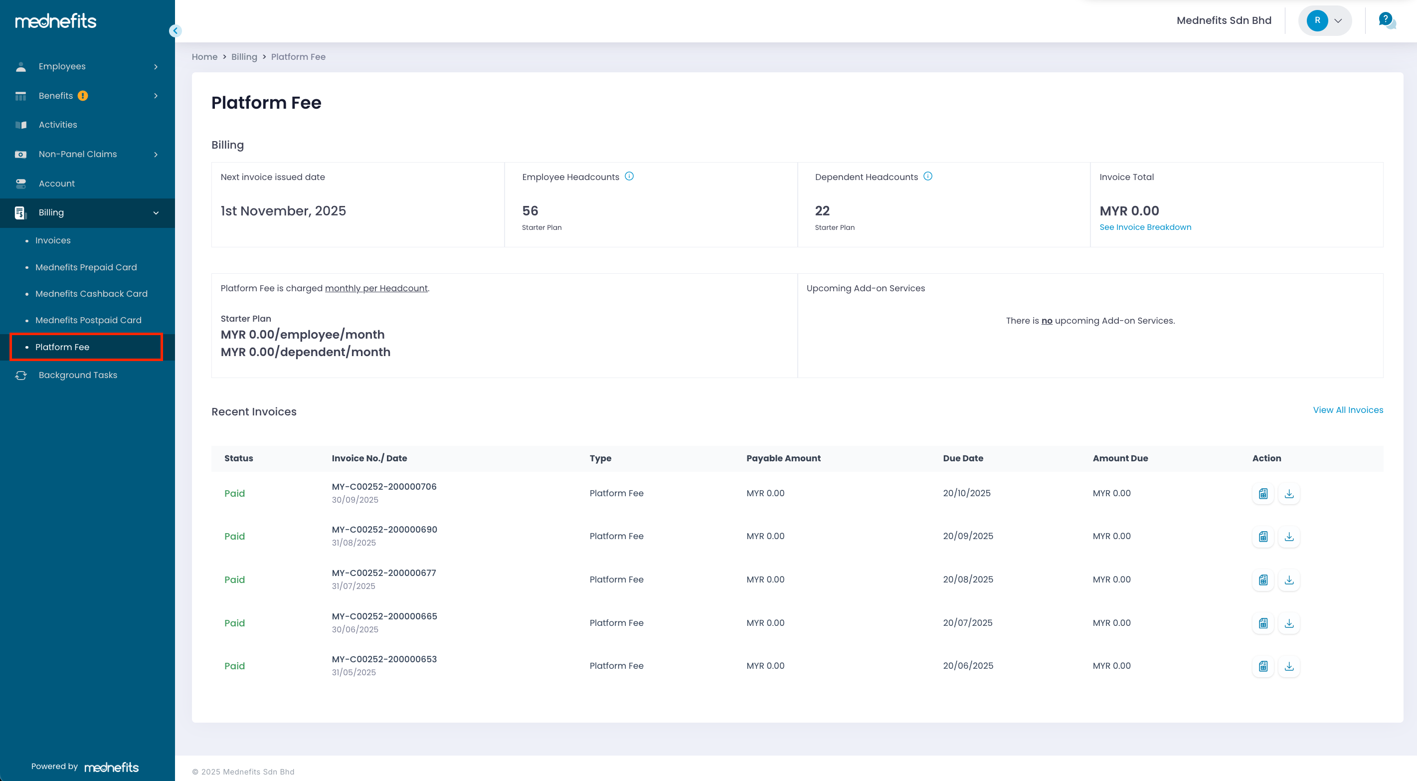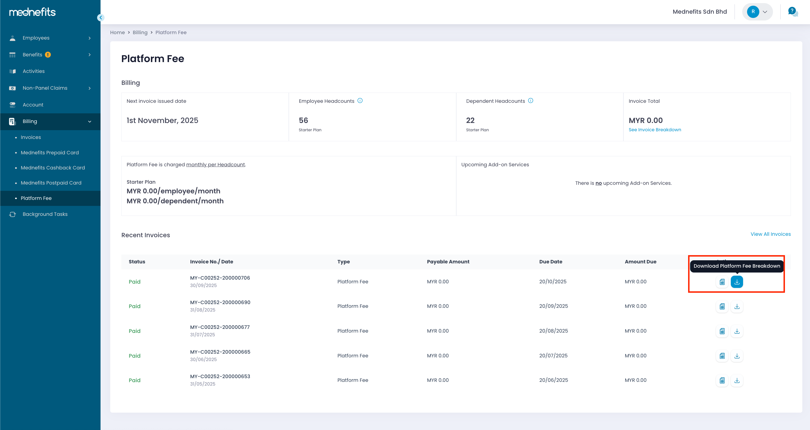 If you need to download the platform fee invoice breakdown from your Mednefits account, follow the step-by-step guide below. This guide helps you access and download the detailed invoice breakdown easily from your HR portal.