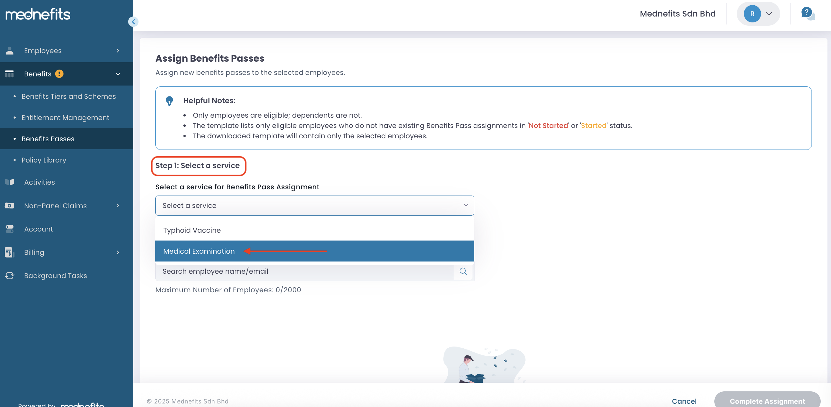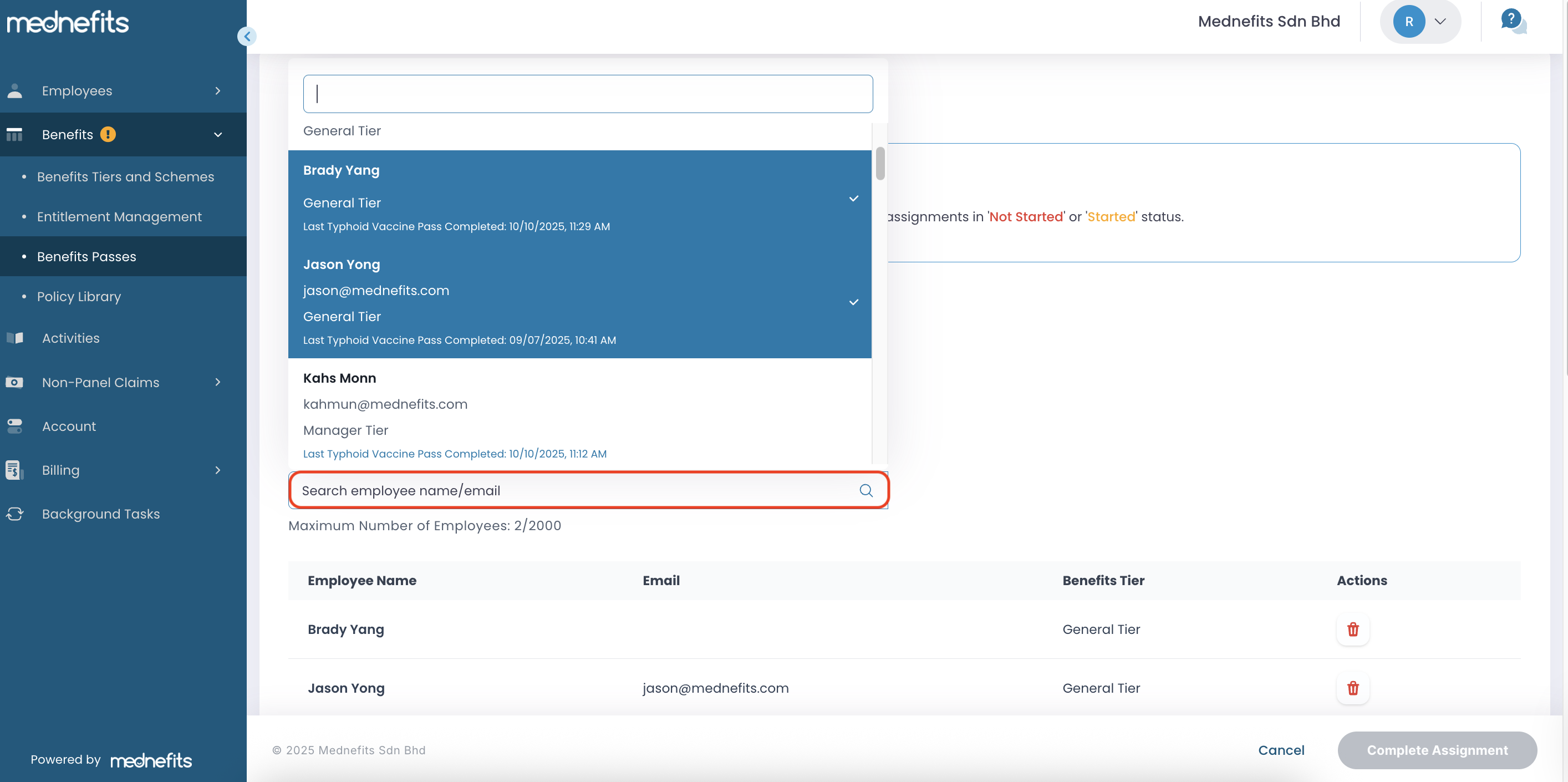 Step 2: Search and select the employee(s) to assign the Benefits Pass.