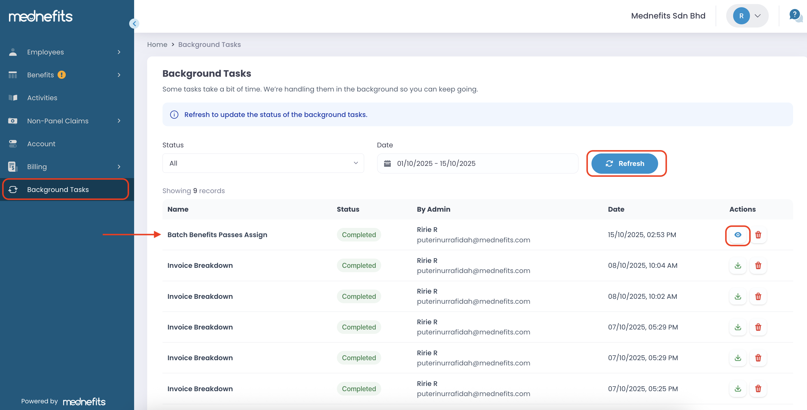 - Click View Page to navigate to the Benefits Passes Overview table and verify if the assignments were successful.