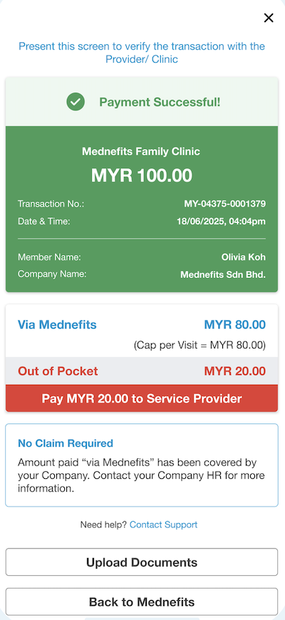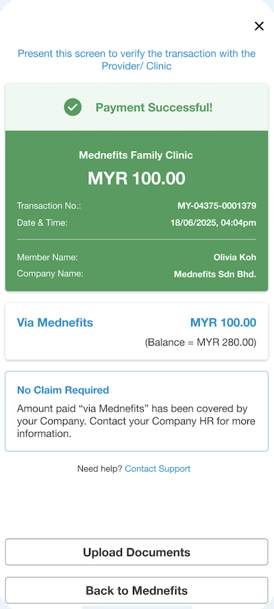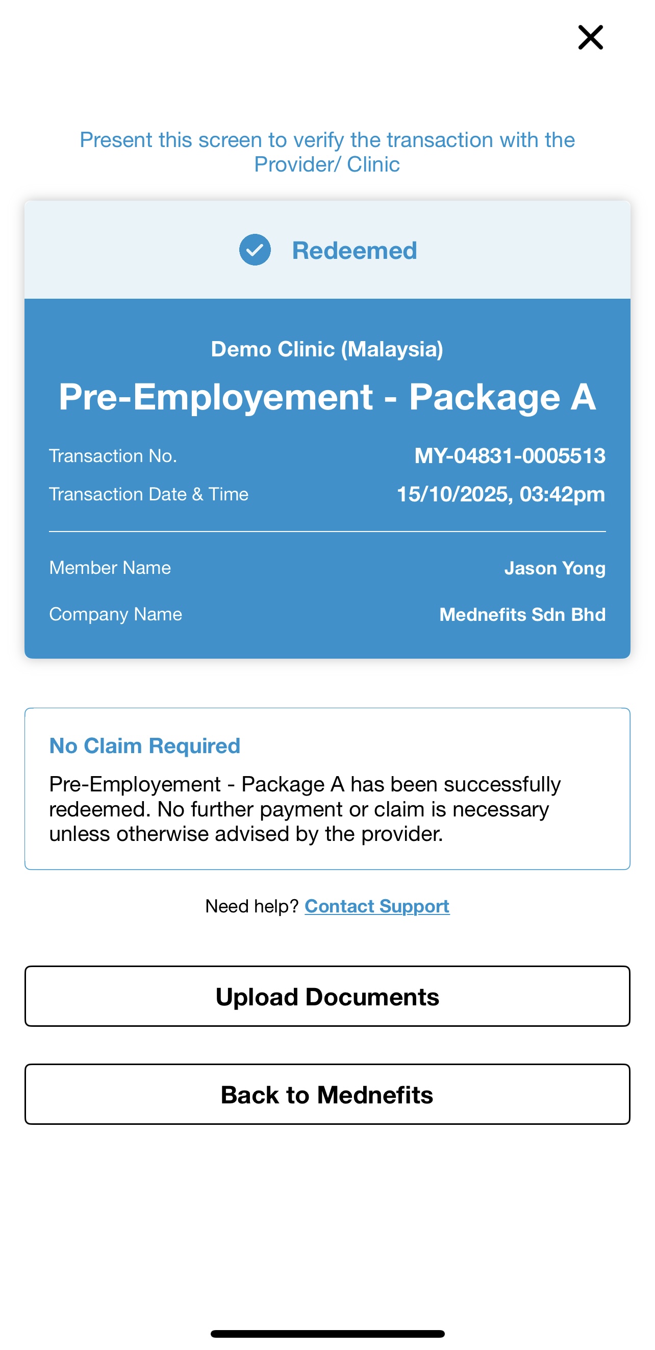 Step 6: Show the successful redemption screen to the clinic to confirm your registration and redemption.