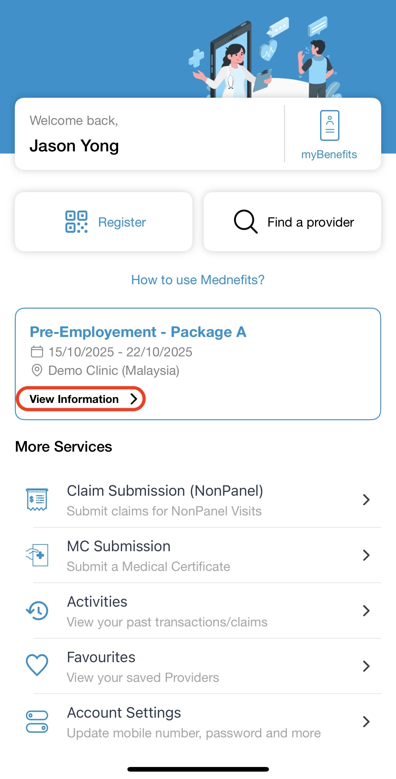 Step 1: Open your Mednefits app and tap “View Information” to view your pass details.