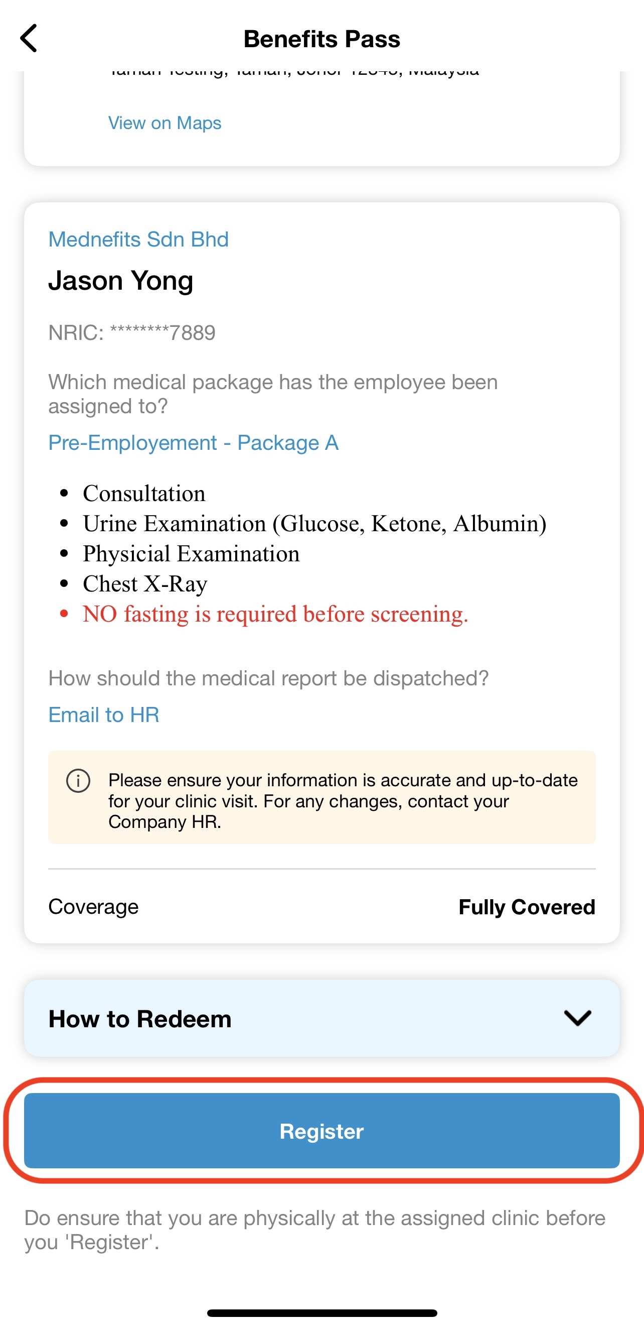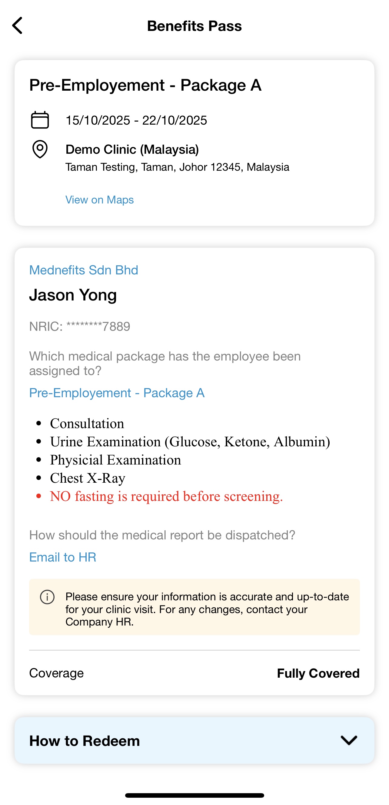 This allows members to easily access selected panel clinics for Medical Examination – Pre-Employment Check-Up services assigned by their HR/admin.