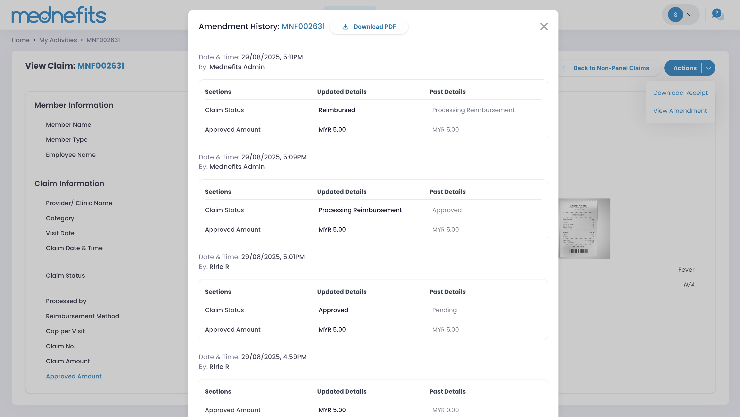 You can now view your claim status history in the Mednefits app or portal for more accurate and detailed information on your claim processing.