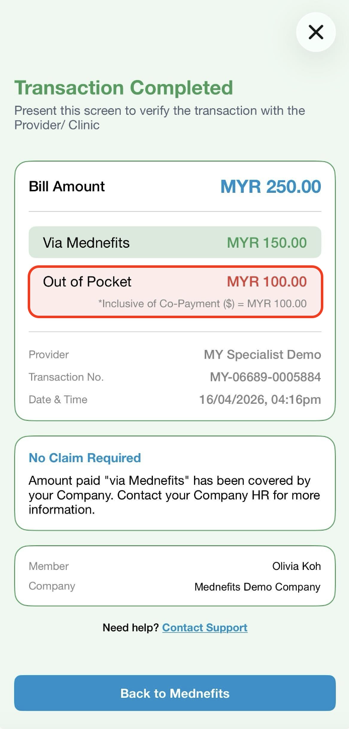 ❗Please take note of the Out of Pocket amount, as you need to pay the amount directly to the clinic.