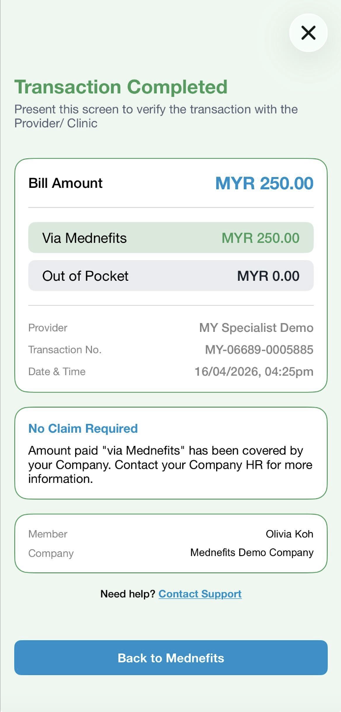 - Via Mednefits: The amount deducted from your current balance for this visit.