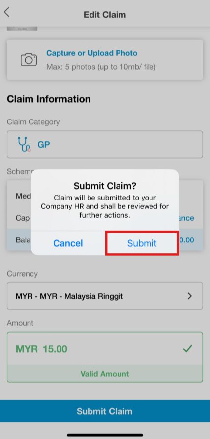 Step 4: Review your amendments and tap on Submit Claim to save your edits.
